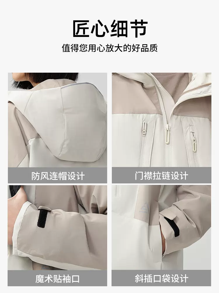 这款 冰洁 224年春季新款 户外防水防风拼色冲锋衣,高密度防风面料,外层防水耐磨,里层薄膜防水透气,搭载科技防泼水技术阻隔寒风,抵御小雨和意外溅湿,肌理清晰,舒适度高,具有防风/防泼水/保暖等效果,透气,防湿气。环绕帽绳,隐形磁吸口袋,魔术贴袖口,压胶定制拉链,时尚版型设计,简约大方,面料防风雨自在出行,精雕细琢每一处细节。
