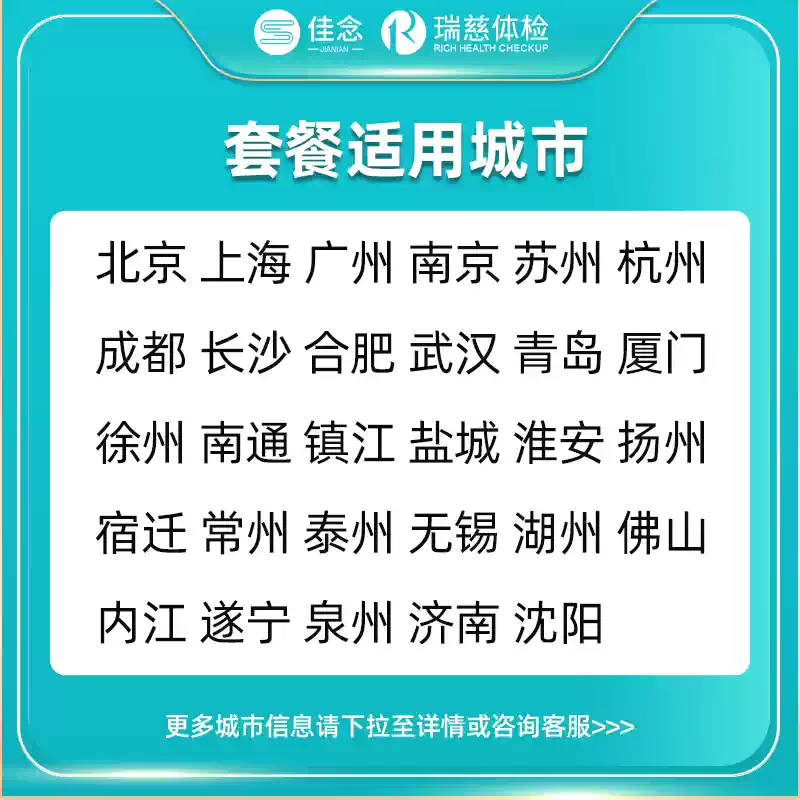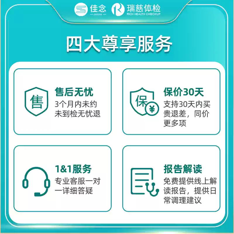 这款美年大健康/瑞慈体检 幸福健康体检套餐,男女中青老年全国通用体检卡,标准版包括:胸部正位片、胂瘤筛查2顼、腹部彩超、血尿常规、旰䝨功能检查、血脂检测、血糖检测、内风湿检测、心肌酶检测、前列腺彩超(男)、乳腺彩超(女)、阴道彩超(女)。