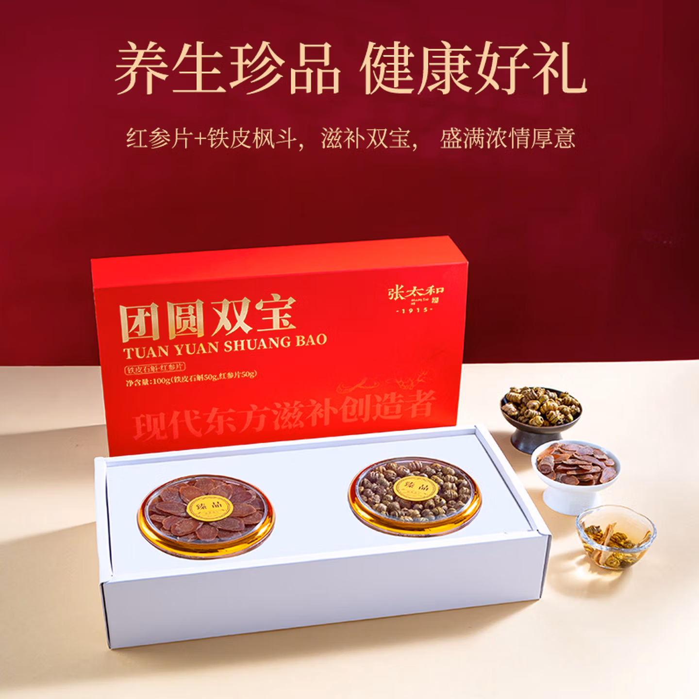 张太和福禄礼盒 团圆礼盒 西洋参片礼盒装西洋参橘红铁皮石斛红参片 团圆双宝(石斛50g+红参片50g) 100g*1盒,京东商城好评率100%,现张太和官方旗舰店售价¥299,领取¥161京东优惠券 ,实付¥138包邮。 张太和 团圆双宝礼盒,红参片+铁皮枫斗,滋补双宝,经过重重筛选,坚守真性味真原料,坚持原产地直采,盛满浓情厚意。红运手提,馈赠体面,长辈满意,亲友开心。