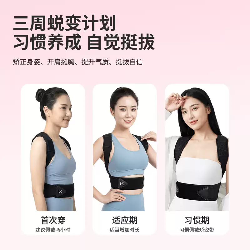 这款Keep 开肩美背带矫正带,非挺胸开背,告别含胸驼背。柔软亲肤面料,内外穿搭不受限。渐进式矫姿,分阶段改善体态,避免一戴就僵的压迫感。人体工学设计贴合背部,分散腰椎压力。软硬适中的双鱼骨支撑系统,结合隐形剪裁与时尚外观,让矫姿悄然融入日常。循环透气网布采用纤细网状成列编排技术,结合舒适高弹,贴肤不勒身,久穿也舒适。独特加宽肩带设计,增大受力面积,将压力均匀分散,告别传统细带所带来的勒痕与束缚感。
