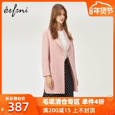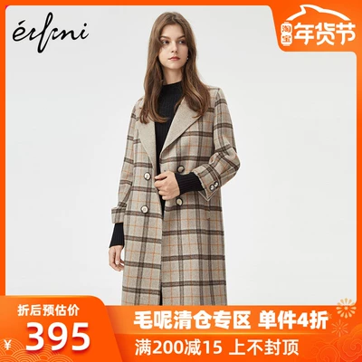 伊芙丽2019冬装新款双排扣宽松中长款双面呢大衣毛呢外套女 折后¥394(淘口令$Wt8B1X6YwpR$)