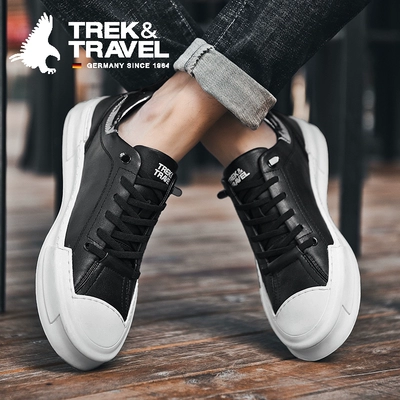 这款Trek & Travel 飞鹰 男式板鞋,猪巴革+布拼接鞋面,帮面触感柔软细腻,整体贴足。舒适PU内里,不磨脚。耐曲折柔软橡胶鞋底,不易变形。防滑耐磨纹理,增加抓地力,行走更加随性自在。