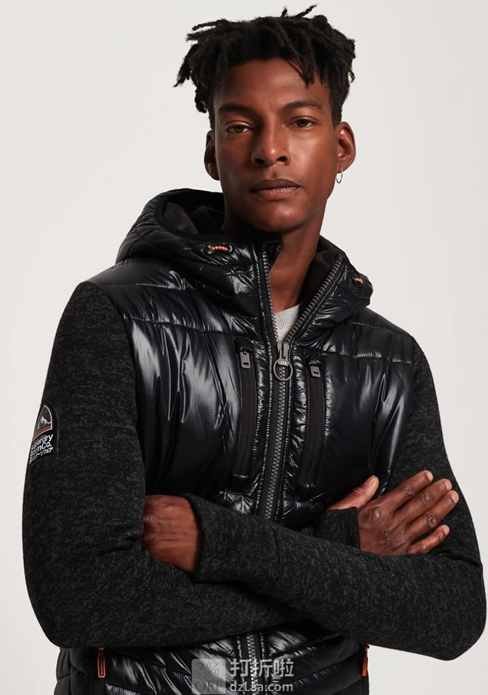 Superdry 极度干燥 Storm Hybrid 男式连帽保暖外套夹克M20001AR,聚酯面料,针织袖子带来带来别致的风格。拉链前襟,四个正面拉链口袋,肩部背面饰有刺绣Superdry标志,袖子上饰有Superdry Mountain贴片。设有弹力抽绳可调节风帽及下摆,袖口设有拇指孔方便运动。