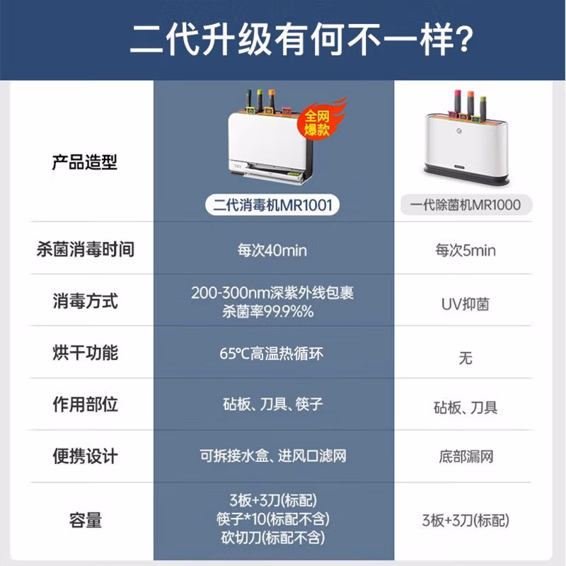 摩飞砧板刀具餐具消毒机二代多功能分类菜板案板消毒刀架套装刀筷子消毒筒烘干紫外线杀菌置物架MR1001 ,京东商城好评率99%,现摩飞电器清洁电器旗舰售价¥548,下单立减¥170,可领取¥50京东优惠券,Plus会员兑换¥500-20全品券,叠加Plus会员居家特权卡¥499-40优惠券(没开过的需要花9.9元开通),实付¥268包邮。