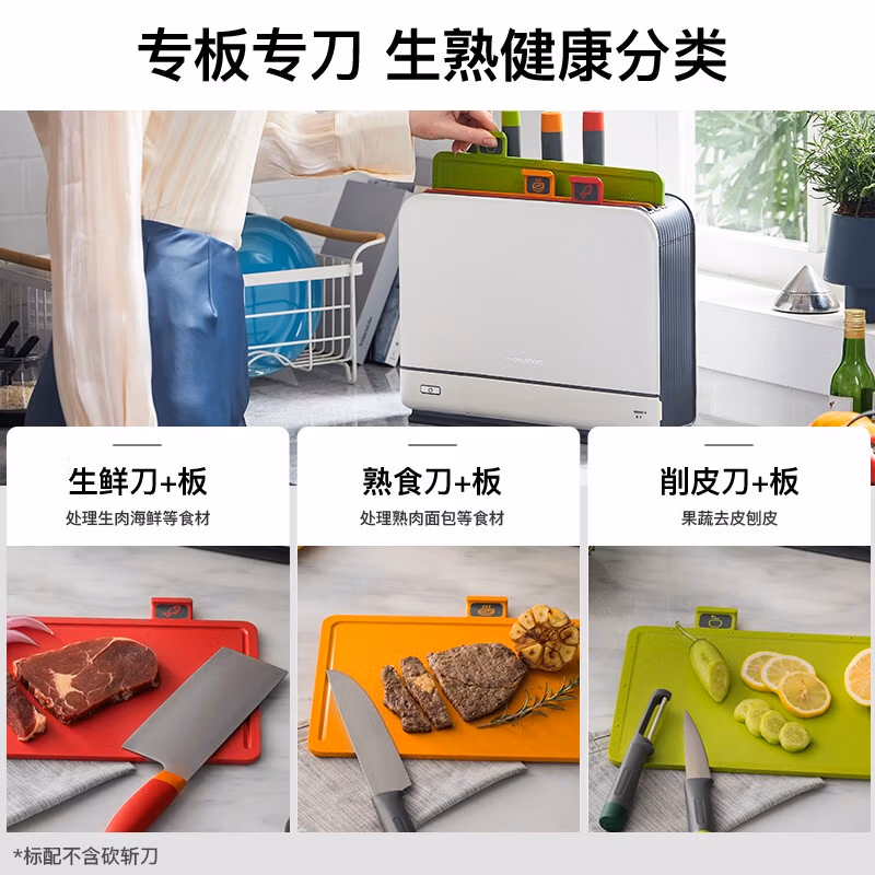 这款Morphy Richards 摩飞 MR1001 二代砧板筷子刀具消毒机,生食刀板、熟食刀板、果蔬刀板,专板专刀,分类不串味、细菌不交叉感染。刀板颜色一一对应,清晰标签,无需反复记忆。灵巧设计,高效分类处理,轻松满足各种料理需求。不止是菜刀砧板,还是会消毒机、收纳座。UV智能消毒,紫外线深层抑菌,一键操作,自动关闭无需看管。无线轻巧,随处可用。标配自带三板三刀,可收纳三板四刀十筷。