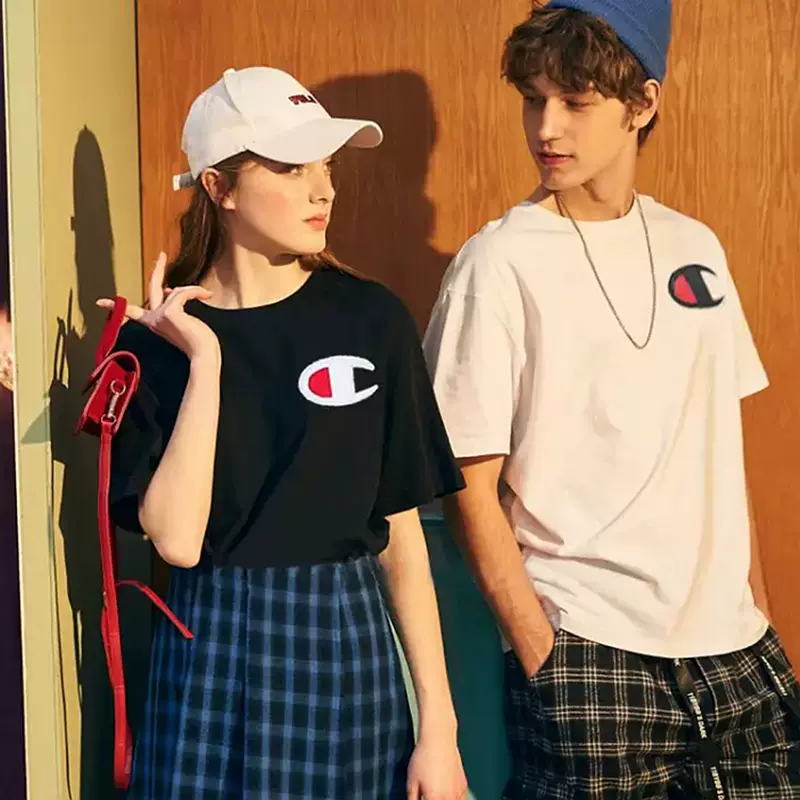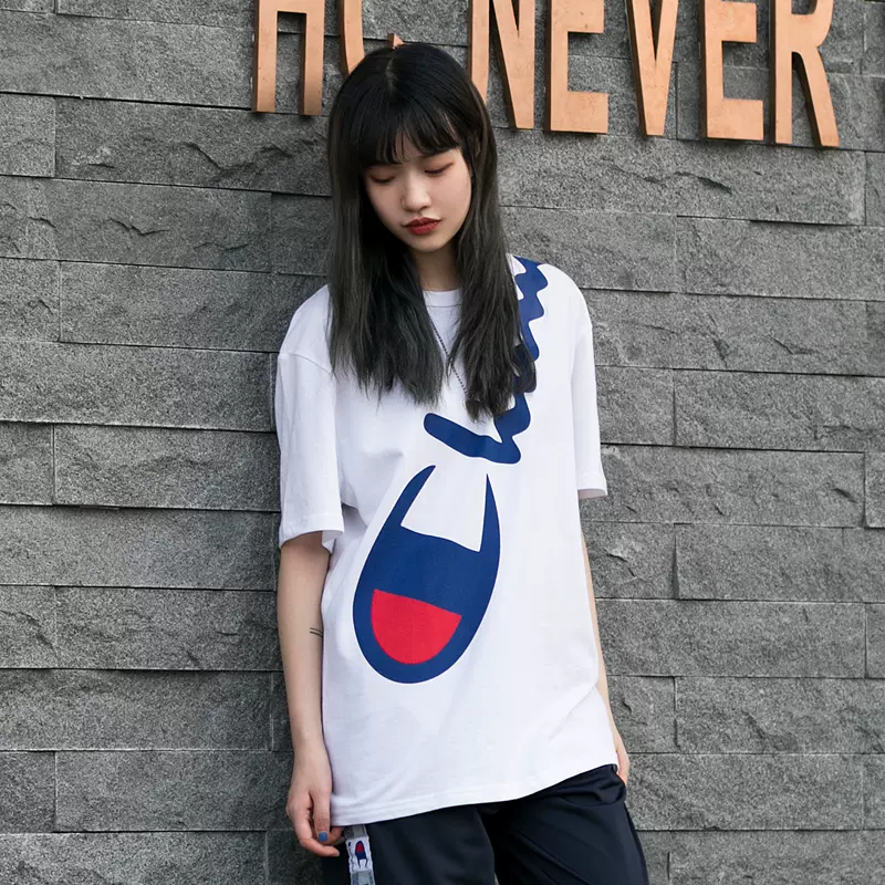 这款Champion 冠军 Life系列 T1919G 情侣款 大LOGO短袖T恤,100%全棉面料,舒适透气,潮流时尚的全身LOGO印花,左袖有 C标志贴片,个性时尚。