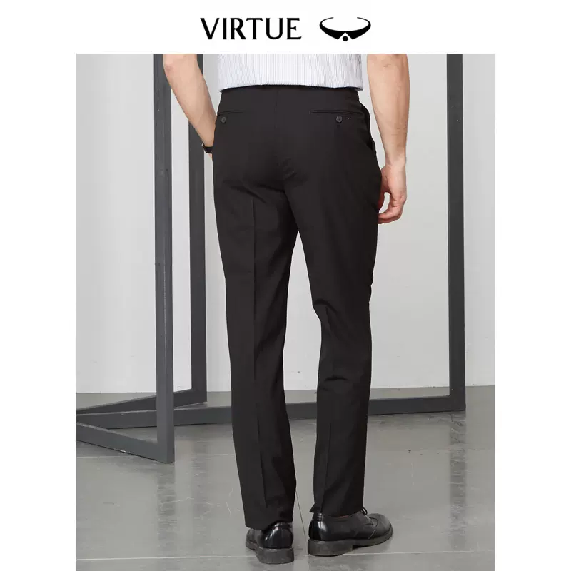 这款Virtue 富绅 男式西裤,聚酯65%+粘纤35%面料,中腰设计,腰围处理得恰到好处,使穿着更符合人体工程学,视觉上拉长腿部线条,让臀部更为立体。单褶/又褶裁剪版型,大腿围宽松设计,增加腿部活动容量,保持型体,修饰线条而不拖沓,更适合商旅穿着。脚口自然垂坠,利落、工整、平服,细密车缝,长度自定。
