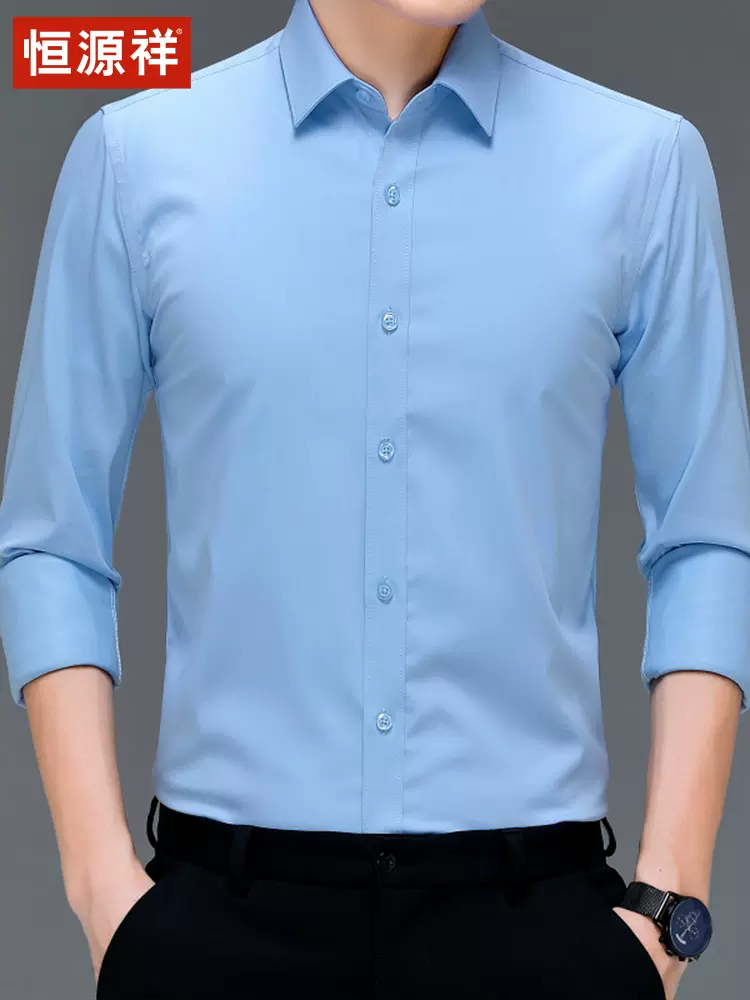 这款恒源祥 男式长袖衬衫,聚酯76% +粘纤21%+氨纶3%面料, 加入天然竹浆纤维,柔滑舒适,吸湿透气远离异味,天然抑菌,时尚翻领,机洗不易变形,挺括肩部,贴合身形,简约袖口,舒适下摆。