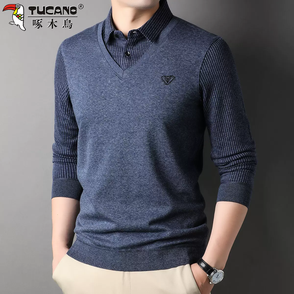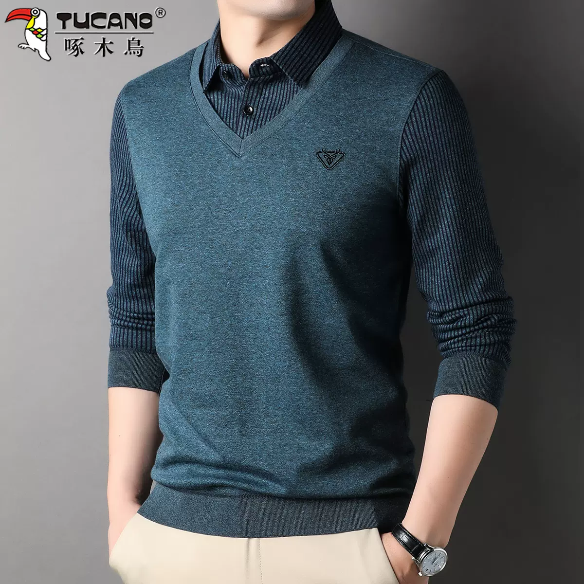 啄木鸟 男式衬衫领假两件毛衣 T-CZ-6780 ,现天猫啄木鸟大码旗舰店售价¥79.9,可领取¥50天猫优惠券,实付¥29.9包邮。点此搜索更多天猫/淘宝优惠券。 这款啄木鸟 男式衬衫领假两件毛衣 ,聚酯面料,柔韧性好,具有微弹的效果,手感细腻,光泽感强。采用固色工艺,洗涤水质清澈,衣服依然光亮如新。假两件翻领设计,自然流畅 。