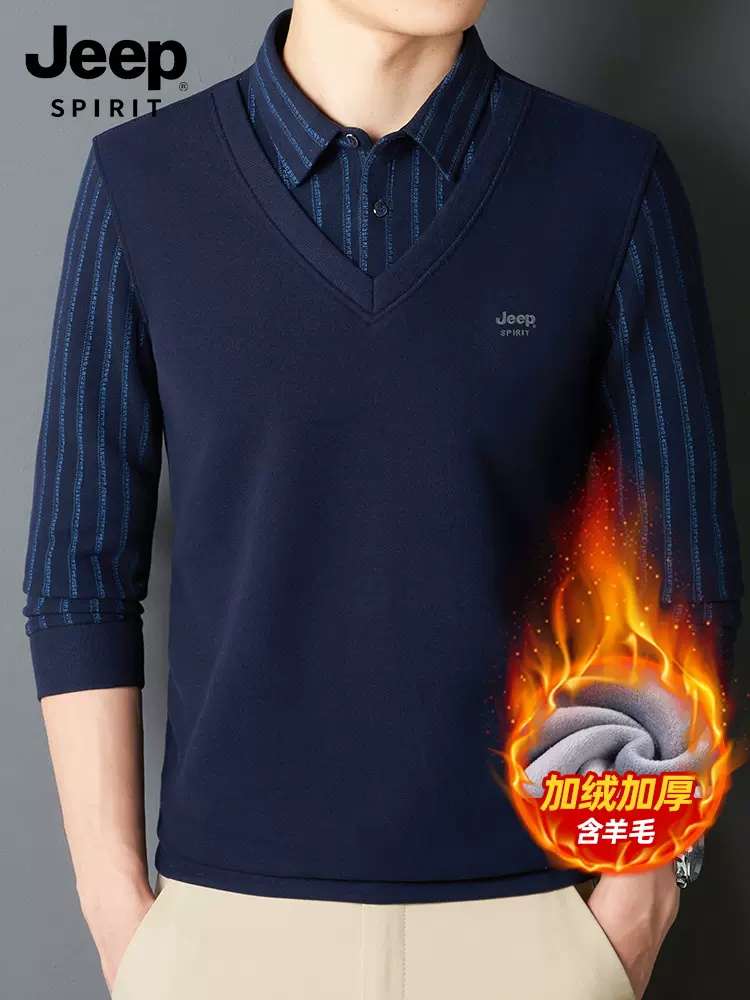 JEEP SPIRIT 加绒加厚假两件 男式针织衫 JP1113Z305J-1,现天猫JEEPSPIRIT服饰旗舰店售价¥110,下单立减叠加领取¥10天猫优惠券,实付¥89包邮。点此搜索更多天猫/淘宝优惠券。 这款JEEP SPIRIT 加绒加厚假两件 男式针织衫,含羊毛蚕丝亲肤面料,蓬松触感,保暖舒适;内里加密暖绒,锁温御寒;3D立体剪裁版型,旨在打造更舒适自在的体感;时尚假两件设计,自带造型感 。