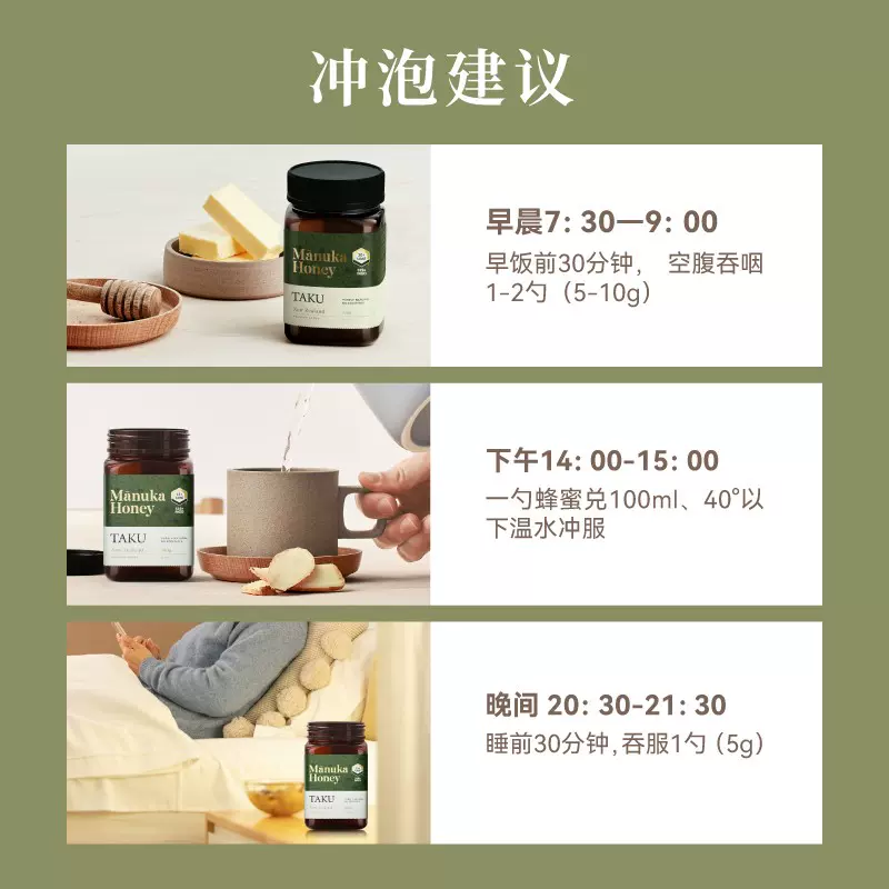 这款TAKU UMF5+ 麦卢卡蜂蜜,源于新西兰无污染的麦卢卡灌木生长地区,经新西兰认证、HALAL证书、UMF™检测认证、新西兰RMP认证及BRCGS认证5大品质认证,味道清甜,口感绵密,蜜液金黄浓稠,透着草本植物清香。能帮助修复肠胃机能,舒缓肠胃不适,增加肠道蠕动,加强消化系统的自我复原能力。