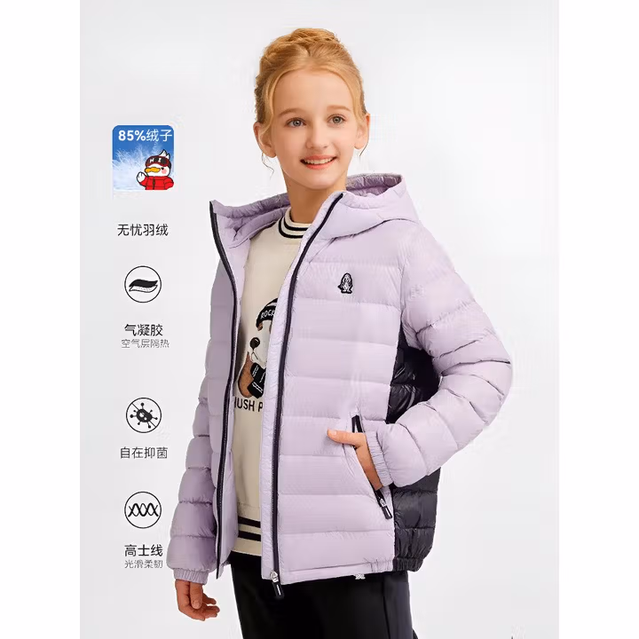 Hush Puppies 暇步士 25年新款 气凝胶科技 中大童轻盈保暖羽绒服 HPTDND14CR890 ,气凝胶科技面料,空气层隔热,轻暖舒适,负离子有效抗菌, 抑菌率超国标,减少健康隐患。填充无忧羽绒可追溯,85%绒子含量,670+蓬松度,1000清洁度。高门襟拉链,冷风钻不进,时尚又保暖。两侧松紧下摆,温暖舒适,不紧绷。松紧袖口呼吸般柔弹调节,防风保暖。立体硅胶LOGO,触感柔滑,细节精美。
