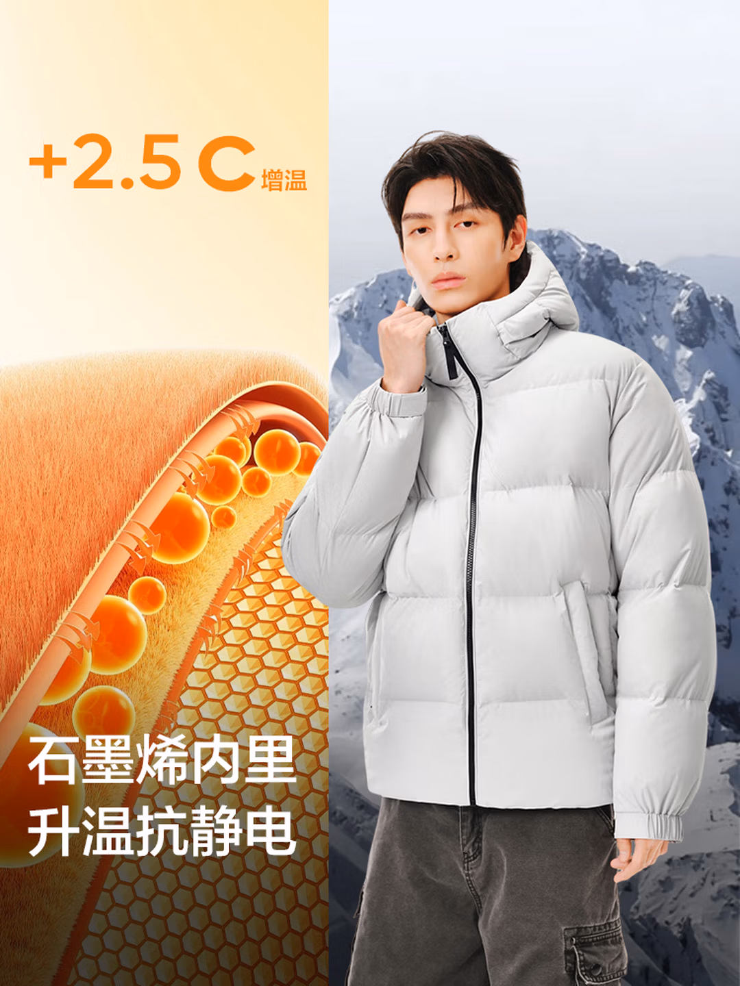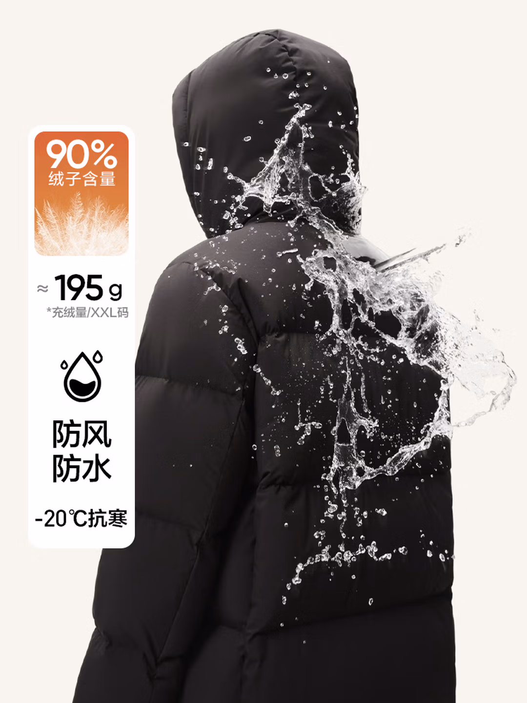 网易严选 25年款 -20℃抗寒 短款连帽羽绒服 4203077 ,短款轻盈百搭,更显身材比例。50D超高弹面料,出色的伸缩性,便于冬日活动。面料强防水4级,易去污4级,防风指数<0.1mm/s。填充650蓬90白鸭绒,充绒量155-195g,高支高密防钻绒胆布,石墨烯内里,升温抗静电。立体连帽结构,全方位防风保暖。帽子抽绳可调节,狂风也不怕。拉链门襟,锁温更贴心。