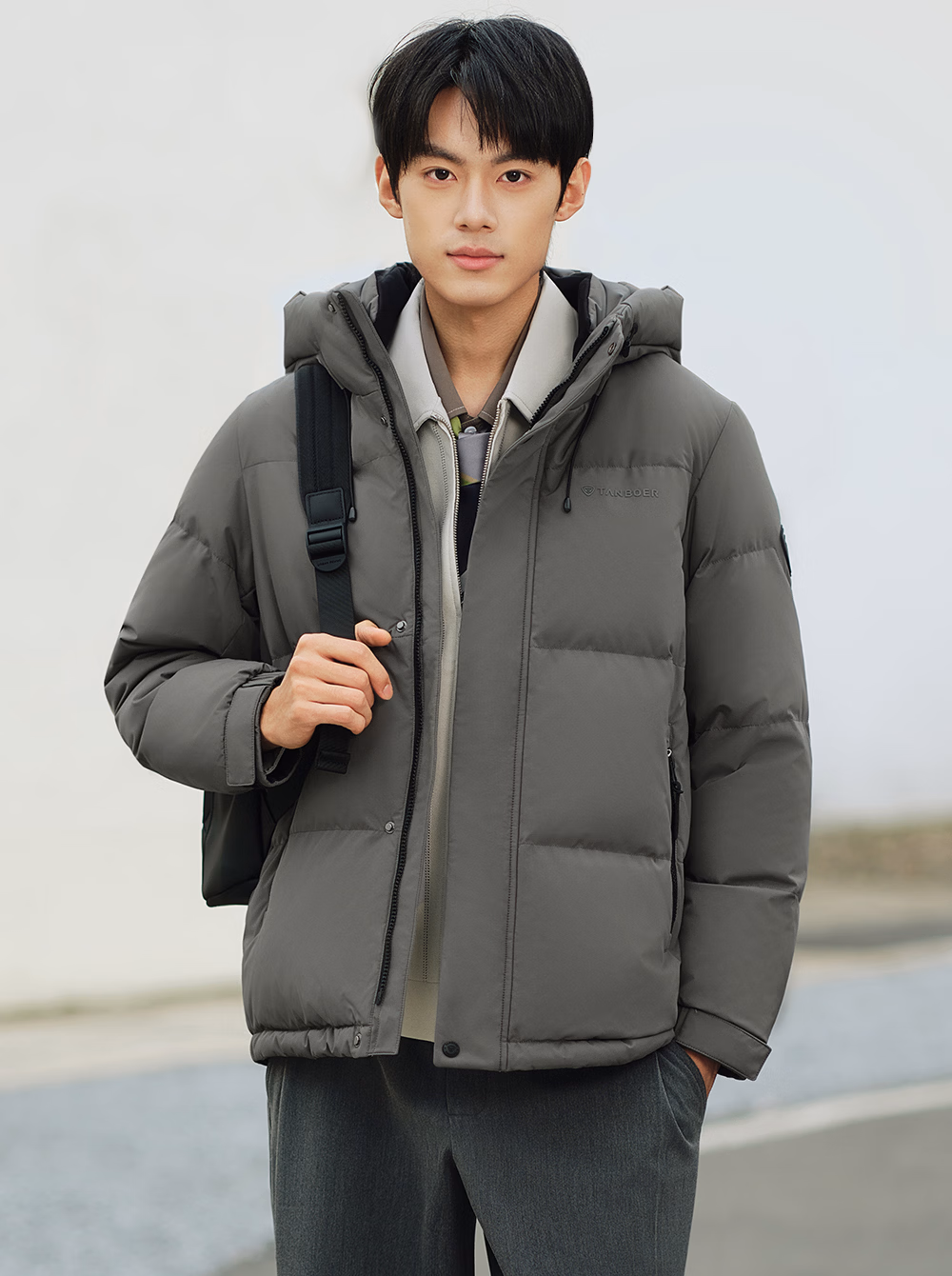Tanboer 坦博尔 25年冬季新款 男款连帽羽绒服 TA5550325D ,3D立体剪裁,对胸围、腰围、衣长、袖长等进行多维度优化达到合体不紧绷的平衡,包容多种身形,活动自如无束缚。专利暖肩科技+蓄热科技内里,实现由点到面的立体环绕暖感高效循环人体热能,提升体感温度。