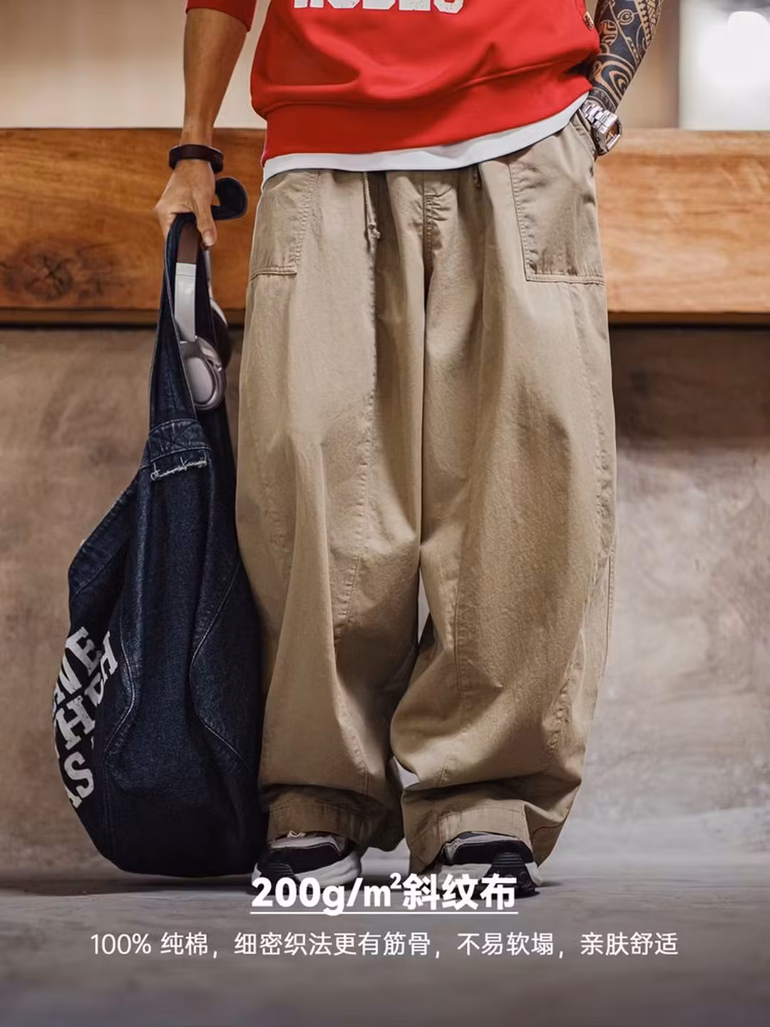 这款Maden 马登工装男式休闲裤 ,比常见balloon pants多加N张裁片拼接,把裤型“拼”成更立体的3D茧型,走路有空间,站着有轮廓,复古松弛感随穿随有。200g/m²全棉斜纹布,稳稳撑起立体廓形木纹树脂扣、RETRO织唛细节点睛一体式抽绳腰头,贴合不同身形,松紧随你“毫不费力的VTG造型",上身即得从街头到日杂,各路博主都在搭。两款滤镜级配色,无需思考,闭眼入从美式Vintage到City Boy,怎么搭都复古有腔调。
