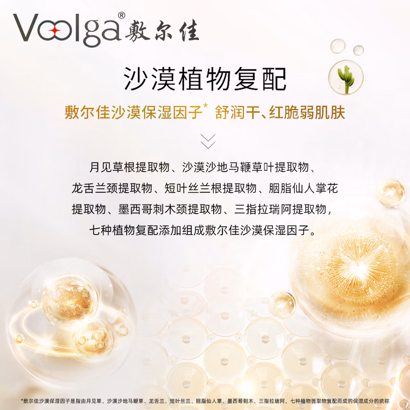 敷尔佳 沙漠植物保湿修护贴 ,批准文号:黑G妆网备字2021500420,内外双层膜布设计,眼部增加金丝线眼膜区域,紧密贴合于眼部肌肤,奢享“黄金”SPA。沙漠植物复配,月见草根提取物、沙漠沙地马鞭草叶提取物、龙舌兰茎提取物、短叶丝兰根提取物、胭脂仙人掌花提取物、墨西哥刺木茎提取物、三指拉瑞阿提取物,七种植物复配添加组成敷尔佳沙漠保湿因子。
