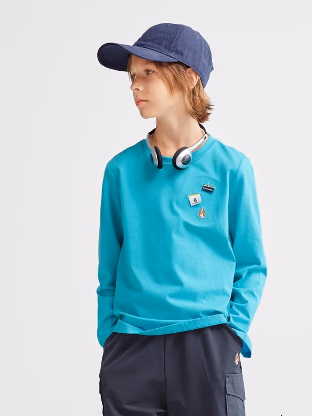 这款Hush Puppies 暇步士 云轻棉 儿童圆领衫长袖T恤 HPSQND45CT770,大身云轻棉面料,平滑垂顺,触感柔软,轻盈云感。舒适无感领标,安心柔软更舒适。平面内里贴衬,避免刺痒扎,呵护肌肤更舒适。舒适本布袖口,休闲时尚范,自在伸展很舒适。宽松下摆,舒适自在。立体织唛设计,简约时尚点缀,细节不单调。