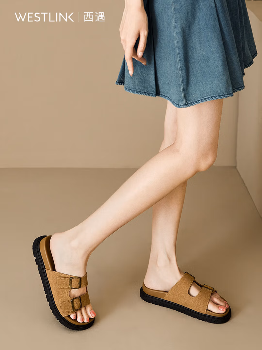西遇勃肯凉拖鞋女2026新款夏季沙滩一字拖鞋外穿厚底凉鞋,京东商城好评率94%,现西遇旗舰店售价¥219,满1件9折,领取5折京东优惠券 ,首购礼金 18元,实付¥69.5包邮。 这款WESTLINK 西遇 26年夏季新款 女式勃肯凉拖鞋 V0066380E,双宽带设计,遮肉又耐看。PVC鞋底,回弹好,久穿不累。成型脚床,贴合脚型,呵护备至。