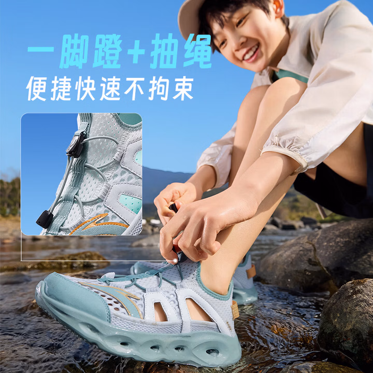 这款ANTA 安踏 踩水王 儿童户外溯溪鞋凉鞋 A12626926cps1,从校园到户外,从溪流到沙滩,城市出行、户外露营说走就走,一双就GO。一脚蹬+抽绳系统,便捷快速不拘束。