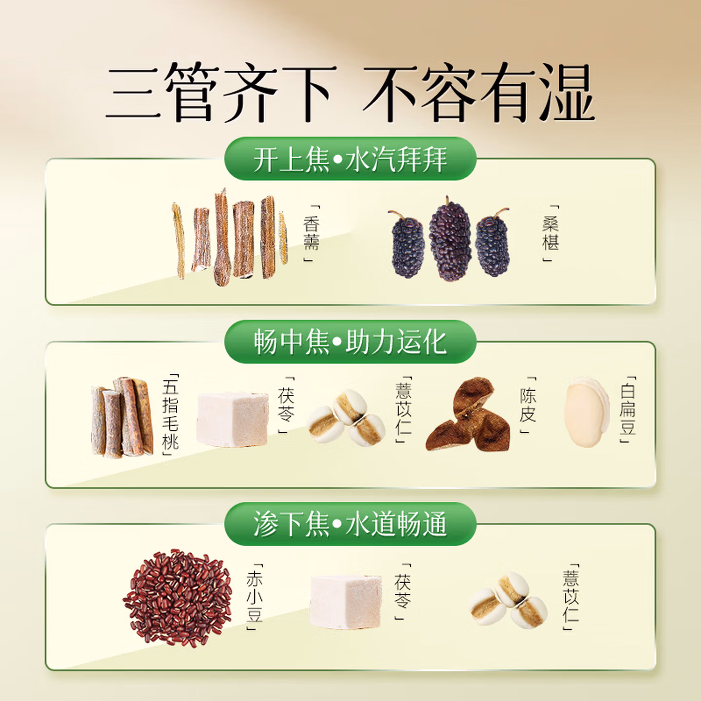 选用椰香五指毛桃中段,大块白茯苓,香浓赤小豆,配合桑椹,薏苡仁、白扁豆、陈皮、香薷,配料干净,只有八味本草,其他没了。48小时蒸制不加一滴水,倾倒不洒真材满料,膏体黑亮香浓醇厚。初闻是淡淡的自然本草香,入口是满满赤小豆的香醇柔和着桑葚清甜,回味是陈皮的芳香和香薷的清。凉开上焦,水汽拜拜。畅中焦,助力运化。渗下焦,水道畅通。