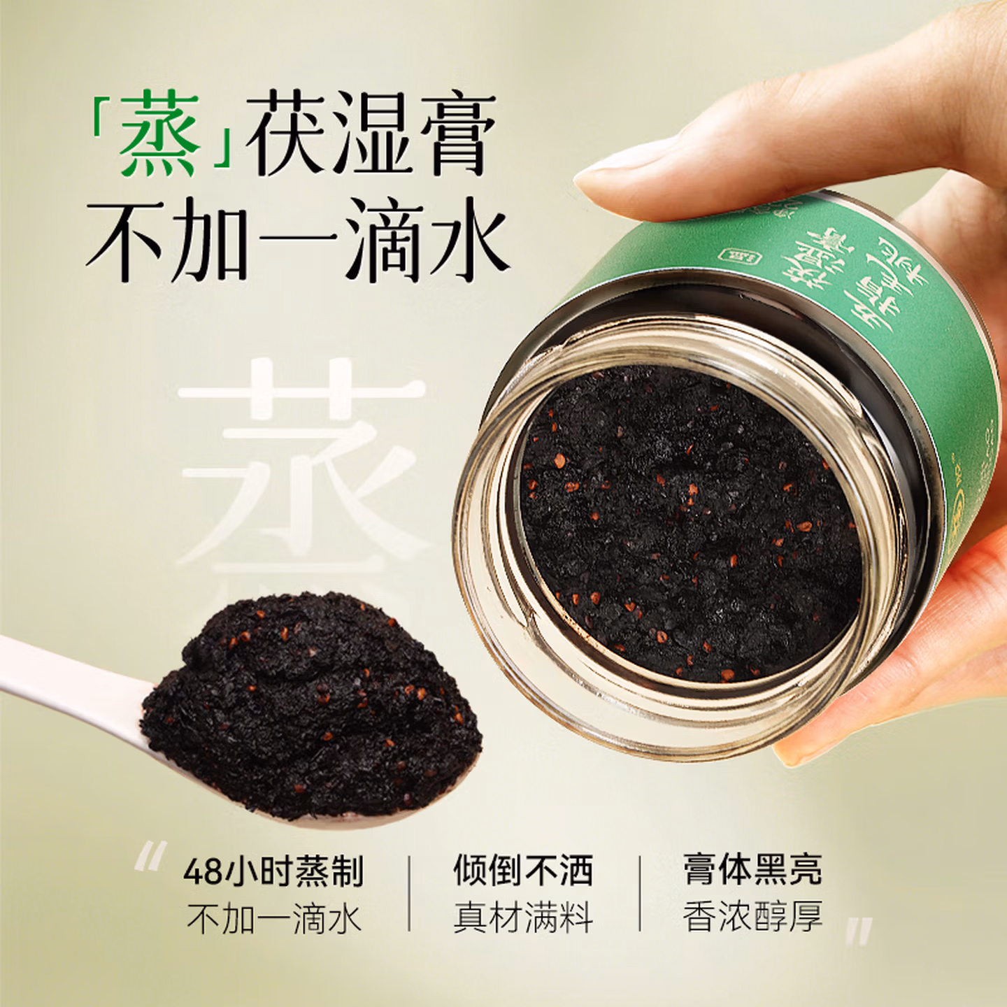 这款福牌 五指毛桃茯湿膏 , 由两个经典茯湿名方“参苓白术散”和“香蕾散”,均出自宋代《太平惠民和剂局方》,复配升级,加减化裁而成。删减了人参、厚朴等原料,升级组方不过补不挑人。添加了茯湿“双星"赤小豆、五指毛桃,以及桑葚,平衡温燥不惹火。