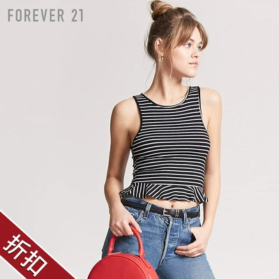 Forever 21 女士夏装短款修身木耳边无袖背心T恤 20元