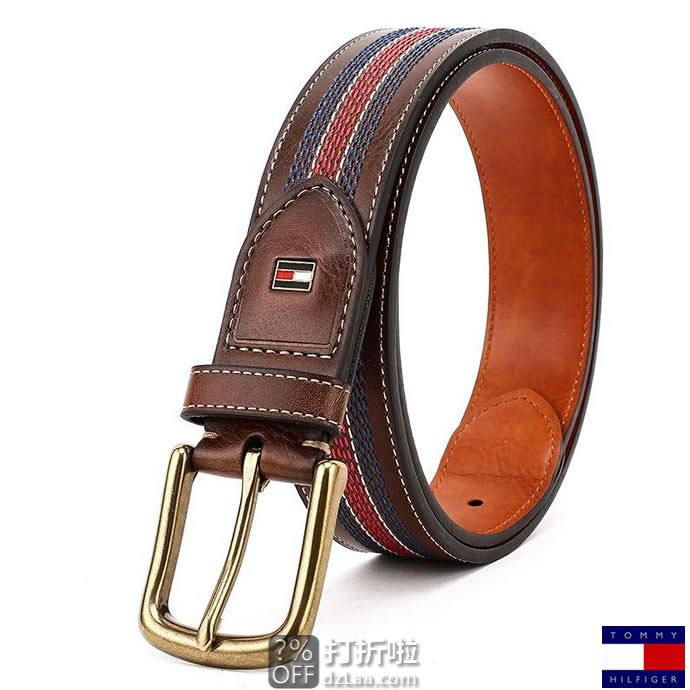 Tommy Hilfiger 汤米·希尔费格 男式 腰帶 11TL02X057 ,亚马逊中国4星好评,现36/38码降至¥91,32码也是好价。 TOMMY HILFIGER 汤米希尔费格 男式皮带,54% Bonded Leather(传统人造革在背面加敷一层含有皮革纤维的纺织品,正面还是化纤,印成了真皮的花纹,整个面料真皮的比例在17%)+46%PU材质,中间红白蓝撞色车线装饰,休闲时尚。复古黄色合金带头,皮带宽35mm。 皮带尺码选择请根据腰围再买大2~3个码即可。