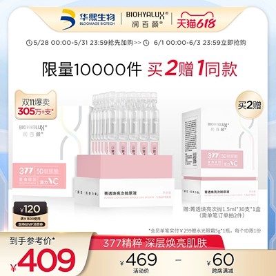 华熙生物 润百颜 「377小灯管」菁透焕亮次抛原液 1.5ml*30支+赠10支 折后¥359(淘口令¥vbkYXg6BiCo¥)