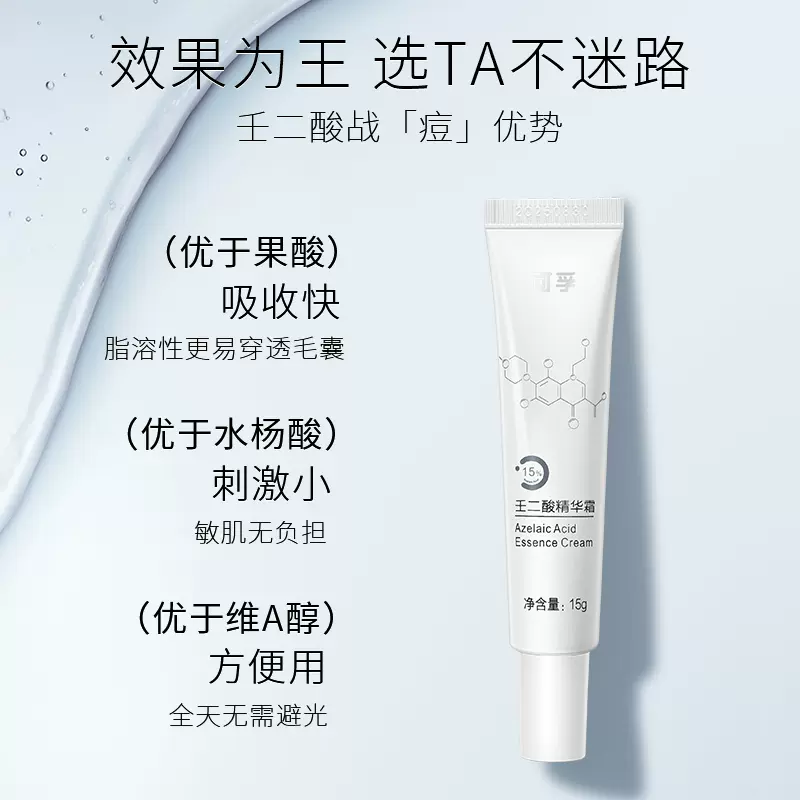 可孚 15%壬二酸精华霜,现天猫可孚医疗器械旗舰店 售价¥59.9,可领取¥40天猫优惠券,折后¥19.9包邮。点此搜索更多天猫/淘宝优惠券。 这款可孚 壬二酸精华霜,含15%壬二酸,更适合初生痘,吸收快,脂溶性更易穿透毛囊。刺激小,敏肌无负担。多重植萃成分,能够中合壬二酸的对皮肤的刺激护肤效果更佳。