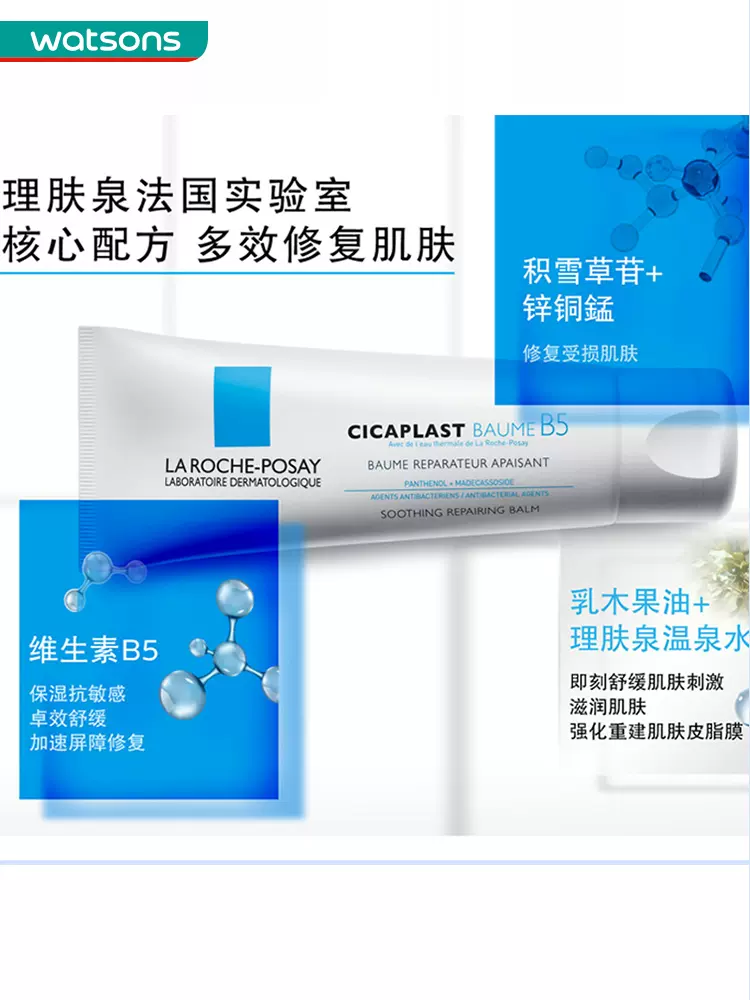 这款La Roche-Posay 理肤泉 痘疤痕舒缓B5修护霜,不含香料和防腐剂。针对中度混合型痘痘肌肤,能滋润保湿修复皮肤,安抚和恢复皮肤舒适感,舒缓皮肤干燥发热等症状,5%羟基积雪草苷与高质感的配方,有利于恢复敏感皮肤修复,修护加速角细胞分化,可以提升表皮组织的修护质量。