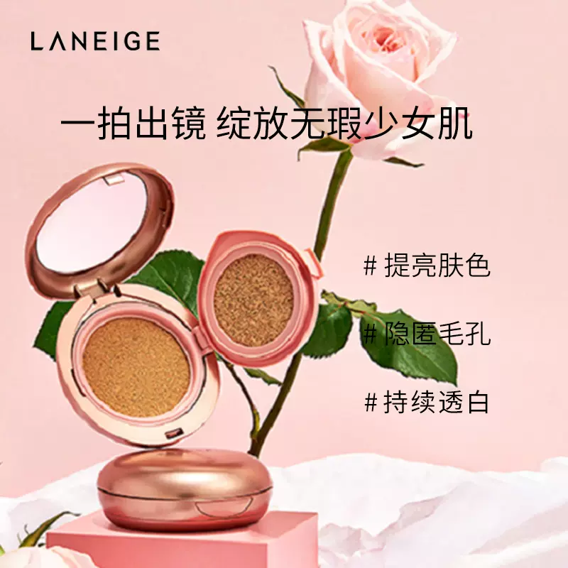 Laneige 兰芝 持妆遮瑕双面气垫霜 ,现天猫爱茉莉官方海外旗舰店 售价¥109,下单立减31元,实付¥69包邮包税 。 这款 Laneige 兰芝 持妆遮瑕双面气垫霜 ,产地韩国,气垫霜SPF34/PA++以及遮瑕隔离SPF50+/PA+++组合,遮瑕气垫二 合一,实力遮瑕,妆效持久,配合附带的粉扑轻松打造哑光和光感妆容。含有法国碳酸水以及荔枝果皮精华,补充水份,令肌肤水润无暇。