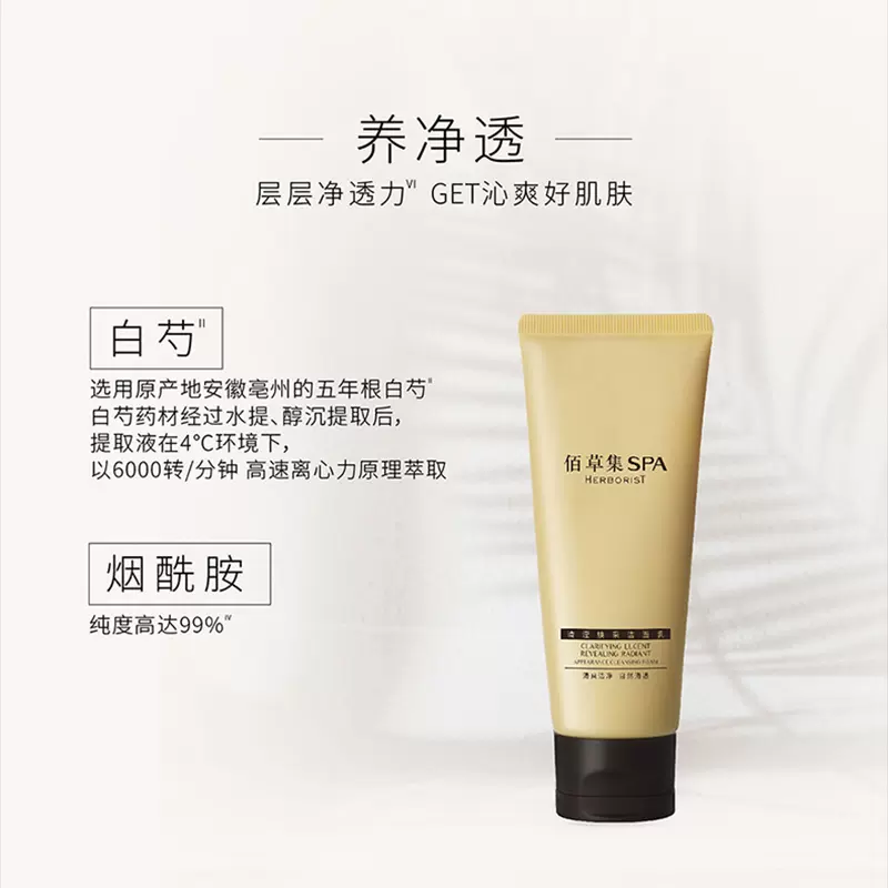 这款HERBORIST 佰草集 SPA清滢焕采洁面乳,氨基酸型表活配方,丰盈空气感泡沫,深入毛孔有效清洁面部多余油垢,肌肤清爽通透,肌肤自在“呼吸”。植蕴配方,富含白芍、烟酰胺、层层净透力,GET沁爽好肌肤。丰柔泡沫,轻松揉出细腻丰富泡沫,易冲洗。绵密丰盈奶泡质地,丰盈泡沫,深层清洁毛孔,带走油脂污垢。复合清新,玫瑰香调,沉浸式香氛,触启净肤新体验。