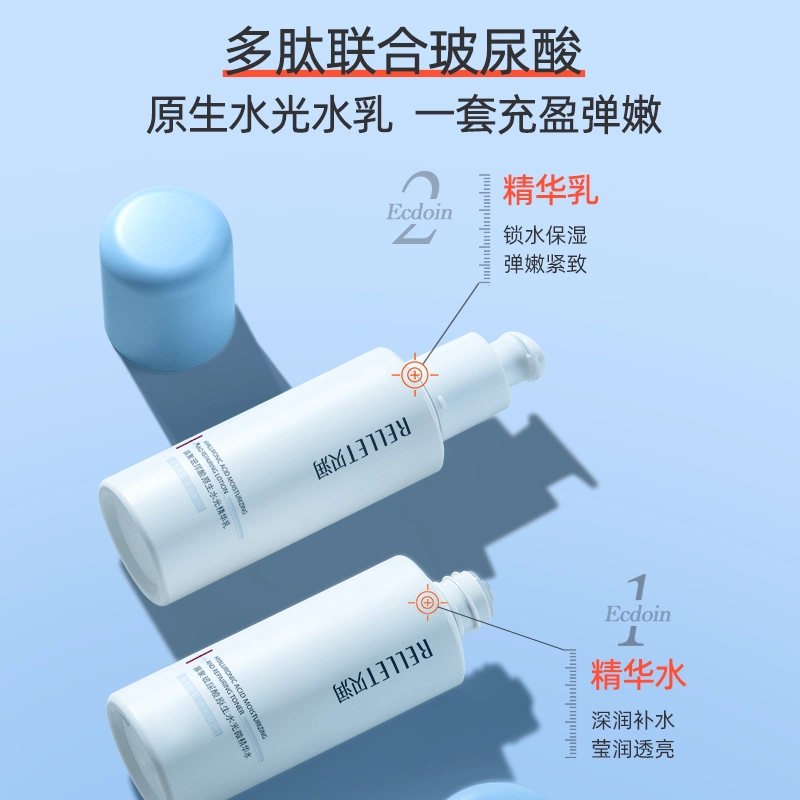 RELLET 贝润 寡聚玻尿酸原生水光微精华水/精华乳,多肽联合玻尿酸,棕榈酰三肽-5+肌肽,促胶原,紧致弹嫩;乙酰基六肽-8+类蛇毒肽,淡细纹,改善松垮;多重玻尿酸,层层渗透,年轻嘭弹。4D组合肽,多向协调紧致。肌肽,改善熬夜暗沉脸;类蛇毒肽,小分子肽,改善动态性皱纹。精华水, 糖类同分异构体+烟酰胺,补水锁水,弹嫩透亮。精华乳,角鲨烷+牛油果树果脂+白池花籽油,卓效保湿防线,滋润不干燥。