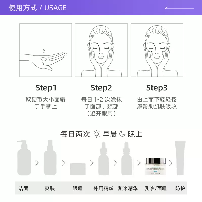 这款SkinCeuticals 修丽可 紧致塑颜精华霜 AGE面霜 ,产地法国。添加欧莱雅集团最高的30%浓度玻色因,与赫莲娜黑绷带持平,可以有效促进肌肤合成透明质酸,加速胶原蛋白纤维再生,填充肌底弹性结构;主打的抗糖化成分也是4%浓度的蓝莓精华,帮助清除糖化最终产物,恢复脆化胶原蛋白的弹性,并阻止糖化反应进程,改善肌肤暗黄失弹的问题;0.2%的植物鞘氨醇,可以帮助促进神经酰胺合成,舒缓肌肤损伤不适,加速屏障自愈。由于添加高浓度的玻色因,这款面霜的质地相对凝厚,延展性偏弱,相对适合偏油性肌肤使用,配合高保湿精华或护肤精油,可以提升使用感和保湿力。