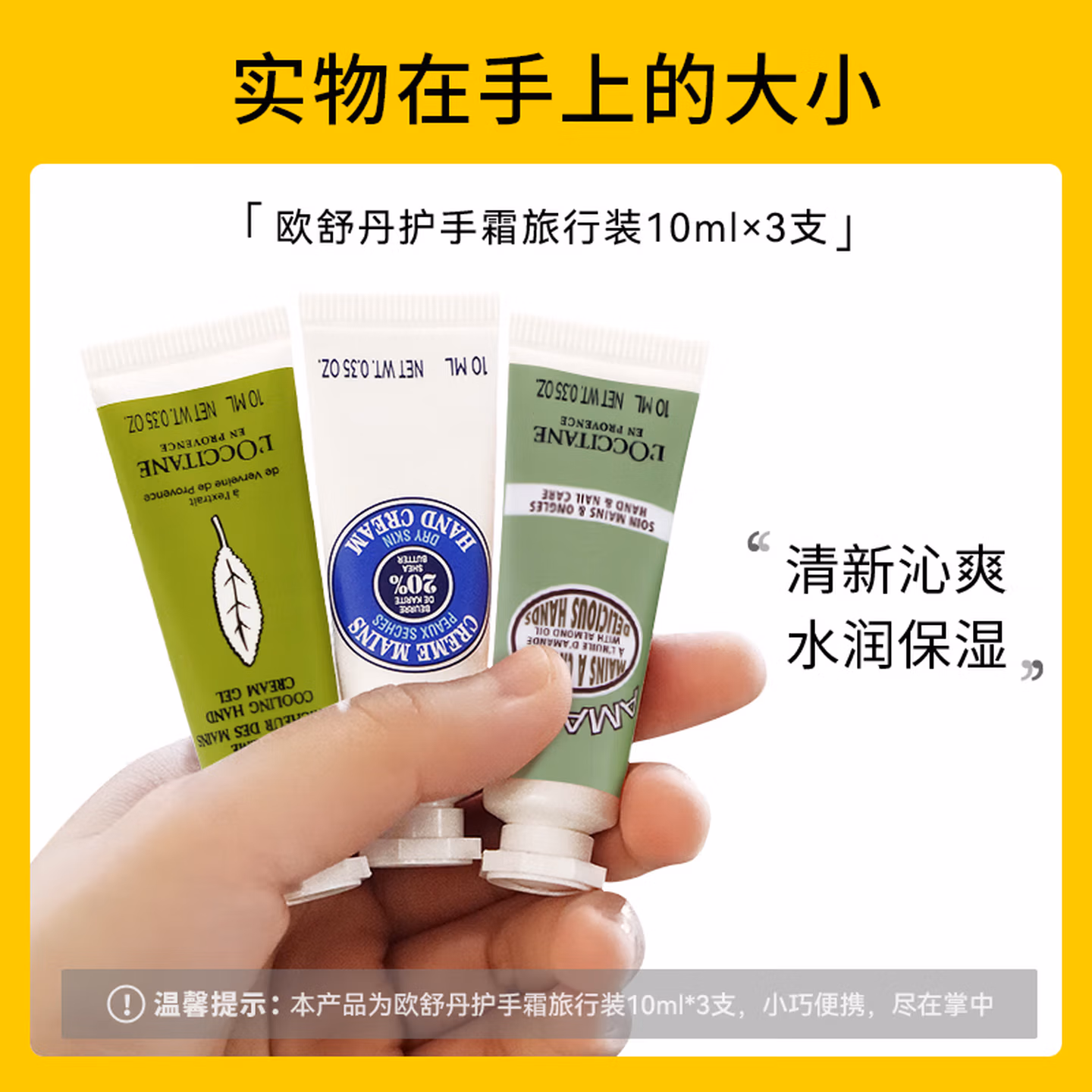 这款L'OCCITANE 欧舒丹 乳木果护手霜旅行装,含20%乳木果油,适合干燥的手部肌肤。Omega6修护皮脂膜,易吸收不粘腻。不皂化物,补充细胞间质,深入修护,保持肌肤弹性,维他命E润抗氧化。质地绵润细腻,轻轻涂抹迅速润透,解决手部干燥脆弱问题,双手水嫩润滑。每支10ml装,滋润双手不停歇。