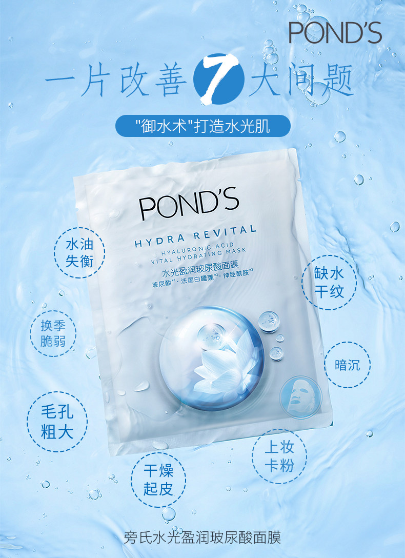 Ponds 旁氏 水光盈润玻尿酸面膜,顾客评价4.9分,现天猫旁氏官方旗舰店 12片售价¥116,买一送一到手24片,还可领取¥20天猫优惠券,折后¥96包邮,点此搜索更多天猫/淘宝优惠券。 这款Ponds 旁氏 水光盈润玻尿酸面膜,含小分子玻尿酸精华,高渗透,直达肌肤,1片相当于一瓶精华的效果,超级补水,肤水润澎弹。含神经酰胺,修护屏障,维稳肌肤。植物萃取法国白莲+墨角藻,帮助肌肤舒缓保湿,保湿锁水,修护晒后损伤。