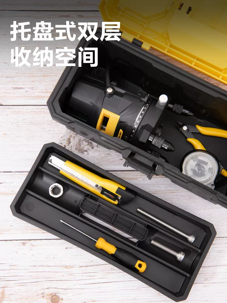 得力 双层收纳工具箱 DL432612,现天猫得力官方旗舰店售价¥16.9起,可领取¥7天猫优惠券,实付¥9.9包邮。点此搜索更多天猫/淘宝优惠券。 这款得力 双层收纳工具箱 DL432612,全新造型设计,加强筋骨托盘式双层收纳空间,同规格箱体可堆叠,箱体筋骨加强,底部蜂窝筋骨,受力分配均匀。美术生、五金家用都可。