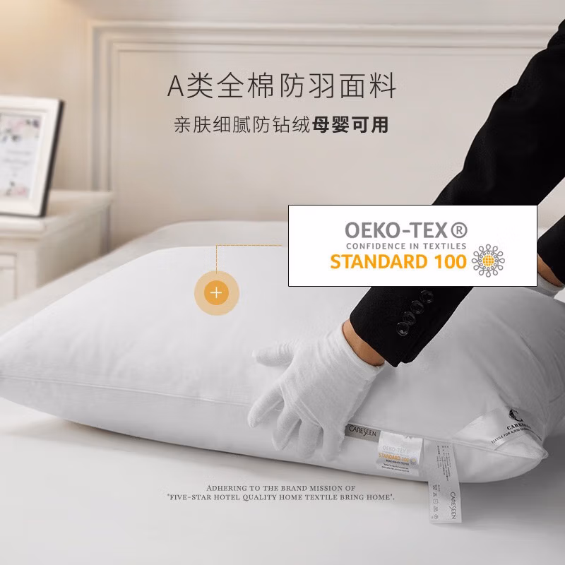 这款康尔馨 怡然 95%白鹅绒A类全棉枕芯 A33320101,类安全等级全棉防羽面料,执行标准GB 18401-2010 A类,无甲醛,无荧光增白剂,可直接接触婴儿肌肤。