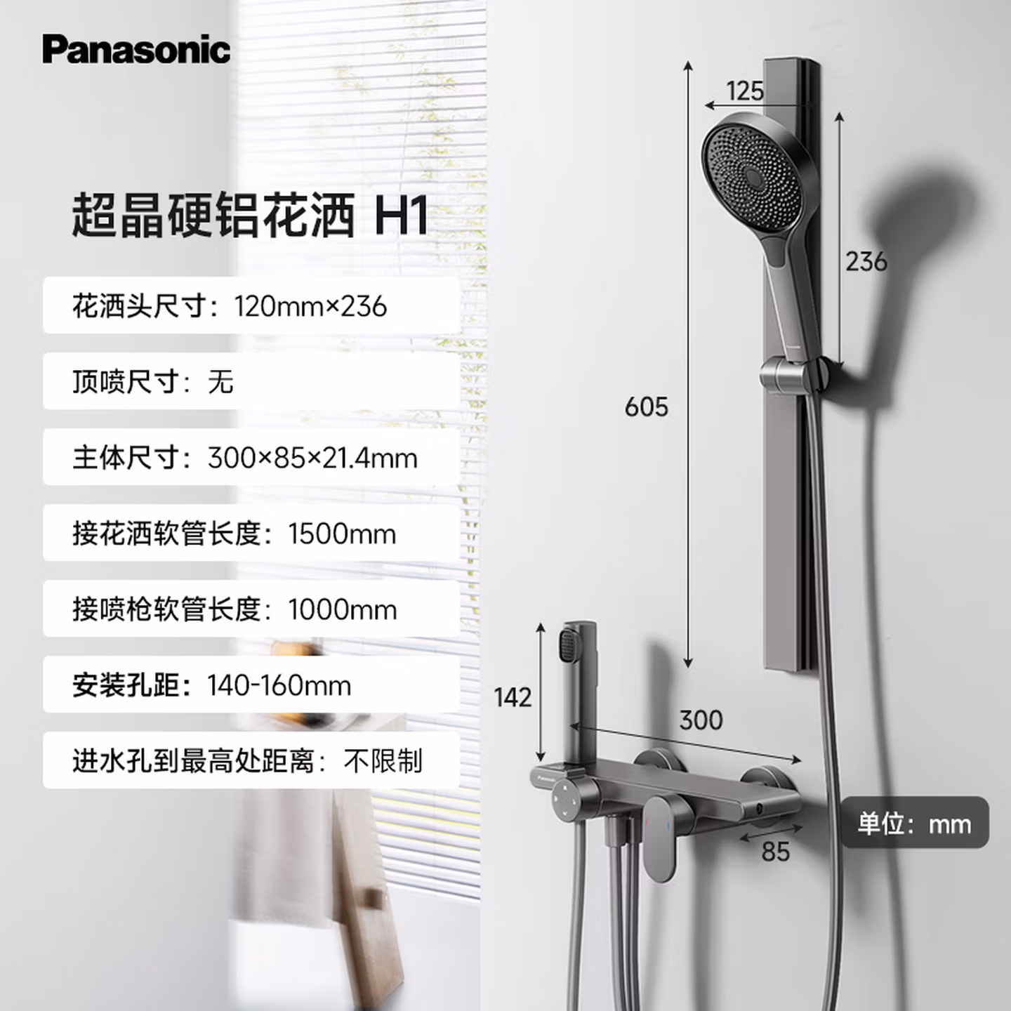 Panasonic 松下 H1 6系硬铝合金三功能分体式花洒淋浴套装 ,采用苹果笔记本同款的铝材质,具有易清洁、防刮花特性,表面处理工艺提升了耐用性。支持雨淋、按摩、集中三种喷洒模式,通过独立导流通道实现模式切换,满足不同沐浴需求。配备300mm多功能置物台,可收纳洗护用品,优化卫生间空间利用率。增压手持喷枪灵活清洁不费力。