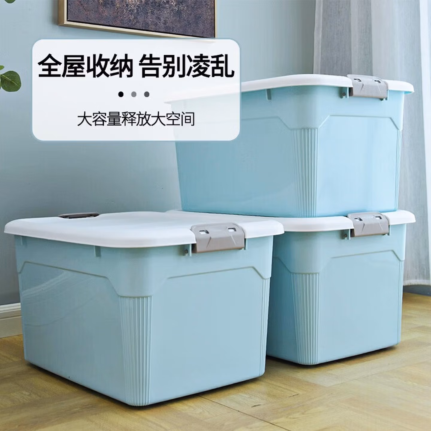 禧天龙(Citylong) 加厚收纳箱大号塑料衣物书籍零食整理箱55升3个装 樱草蓝55L3个【57.8*43*33cm】 升级新材料 实测不虚标,京东商城禧天龙家居旗舰店 售价¥109,满1件减18元,领取1件8折京东优惠券 ,实付¥69.2包邮。 这款Citylong 禧天龙 塑料收纳箱 6148, 容量为55升,尺寸57.8*43.3*33.3cm。 PP材质, 安全无毒。稳固叠加,节省空间不占地。严密卡扣,防尘防潮。