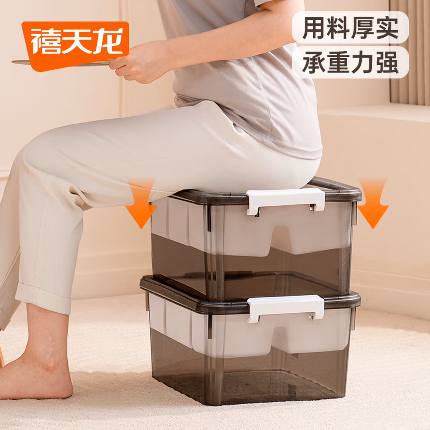 卡扣咬合紧密,密封性出色,下雨也不怕箱子被淋湿 。隔板增设的舒适提手,只需轻轻一拎,便能轻松携带。盒盖凹槽设计,叠多高都不怕倒。圆润边角做工细腻,有效防磕碰。卡扣处仿皮纹设计,握持防滑舒适。尺寸40.5*29.5*18.5cm。