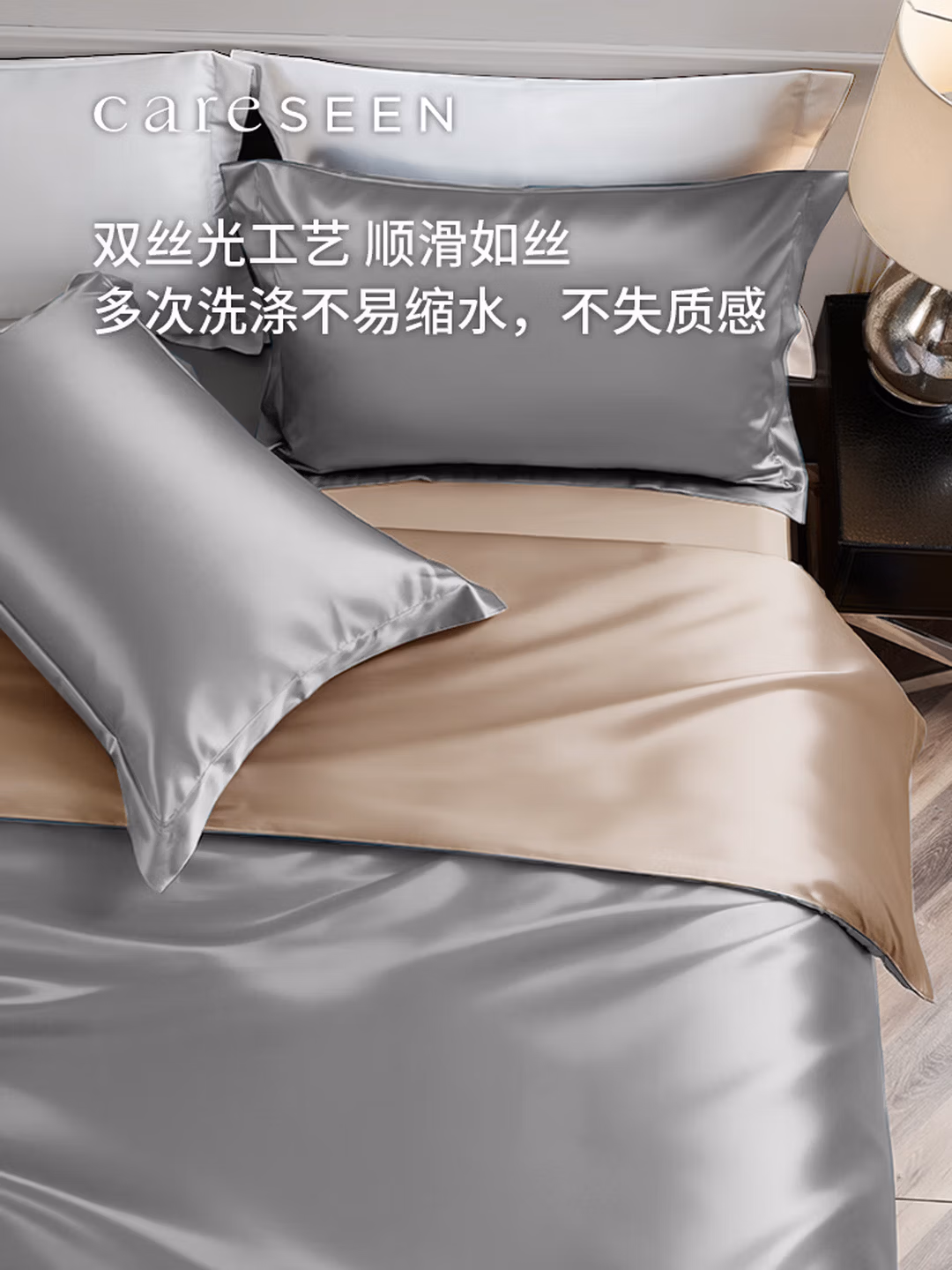康尔馨四件套 五星级酒店100支贡缎新疆长绒棉成人被套被罩床品套件 绅士灰+浅咖 1.5m 床单款 (被套200*230cm),京东商城好评率98%,现康尔馨旗舰店售价¥899,参与满1件打8.8折,领取¥295京东优惠券,国家补贴减 ¥67.68,Plus会员95折实付¥383.49包邮,1.8米领取¥335京东优惠券,实付¥412.99。