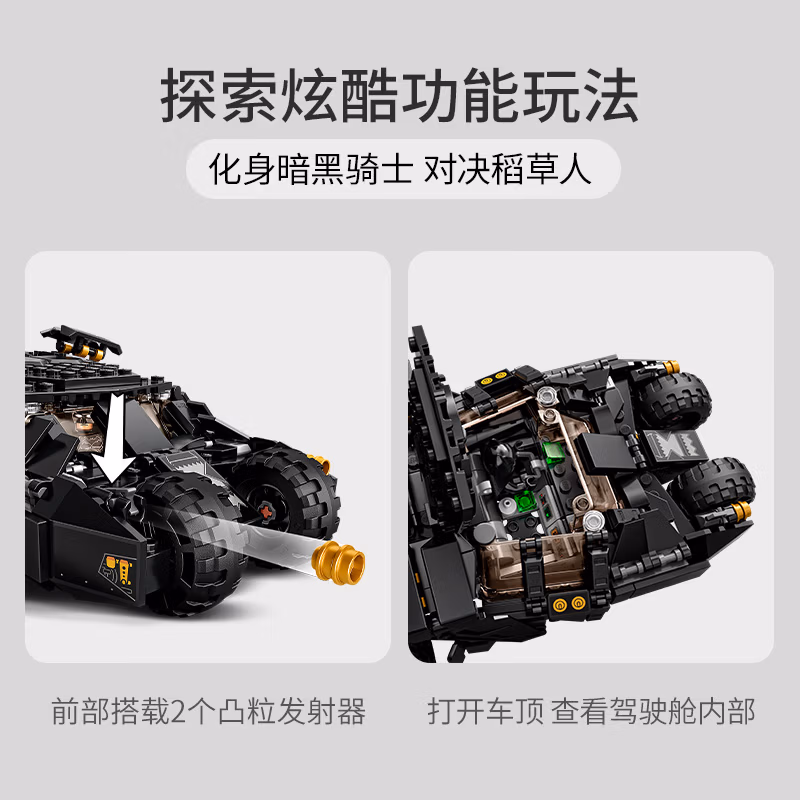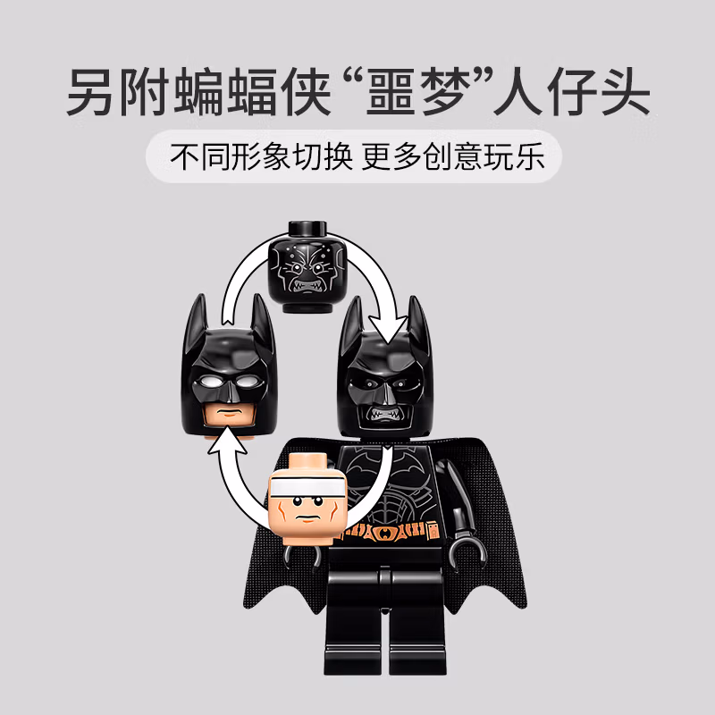 乐高(LEGO)积木 超级英雄系列 76239 蝙蝠战车:决战稻草人 8岁+ 儿童玩具 DC漫画 六一儿童节礼物,京东商城好评率98%,现售价¥399,下单立减60元,分享三人得399-100优惠券,实付¥239包邮。 LEGO 乐高 DC超级英雄系列 76239 蝙蝠侠蝙蝠战车积木玩具,首发于2021年,属于蝙蝠侠系列积木套组,整个套组包含 422 个积木颗粒,大蝙蝠车的迷你版本,有可打开的顶部,战车的前部配有 2 个凸粒发射器,还有存放蝙蝠镖的地方。