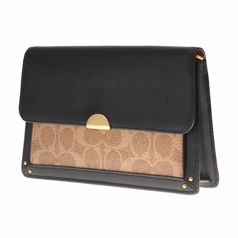 蔻驰COACH【官方直供】奢侈品女士专柜款DREAMER系列小号单肩斜挎包黑色配卡其色PVC配皮87898B4OOH,京东商城好评率100%,31日20点闪购价¥599包邮。 这款COACH 蔻驰 DREAMER系列 女式小号斜挎包 87898 B4OOH,优质帆布+牛皮革包身,手感细腻,易于打理。质感五金,奢华尽显。细致走线,精湛工艺,包包三围约20*4*13cm。