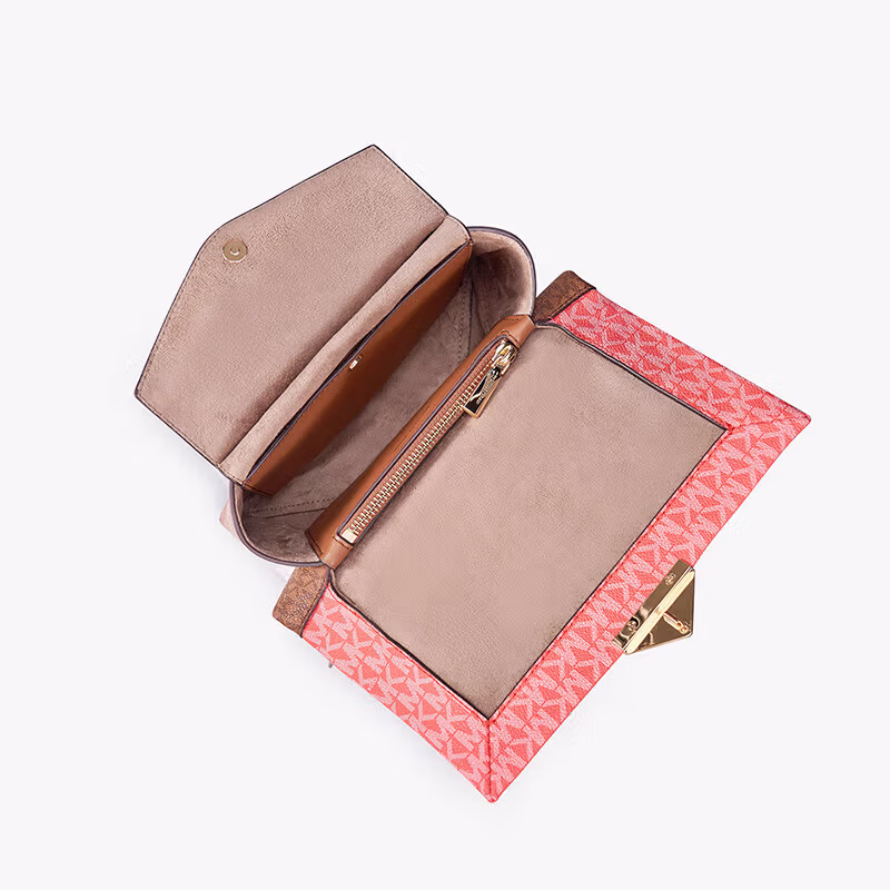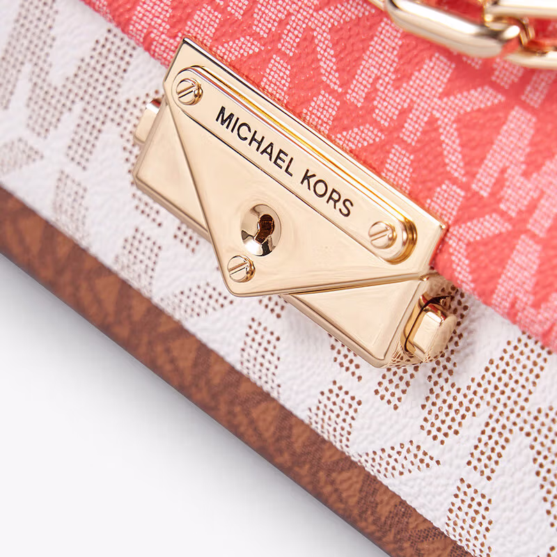 MICHAEL KORS礼物MK女包CECE老花拼色单肩斜挎包 中号 牛皮棕/香草色/西瓜红色,京东商城好评率93%,现特价¥599包邮。