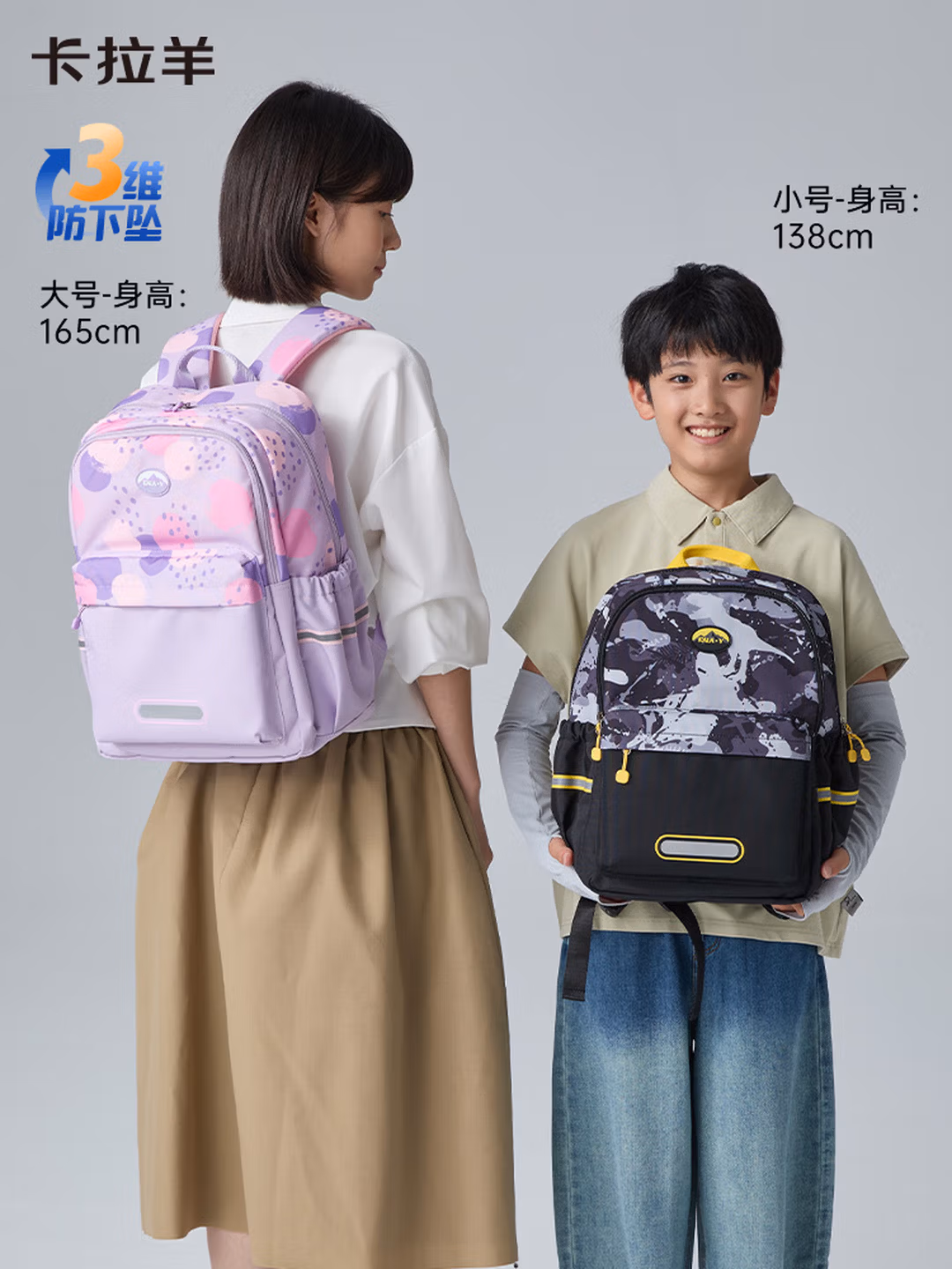 卡拉羊小学生书包1-6年级游学包轻便双肩包女大容量儿童背包男18/24L新 樱花粉 (科学减负设计) 【18L】(推荐身高135cm以下),京东商城现卡拉羊箱包官方旗舰店售价¥229,满1件减80元,领取满¥20京东优惠券,Plus会员叠加满200-25元补贴券, 实付¥104包邮 ,24L贵10元,18L适合135cm以下身高, 135cm以上身高建议购买24L。