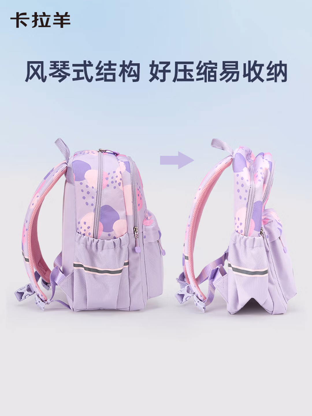 多隔层科学分区轻松收纳,主仓大容量轻松装载,副仓收纳日常物品,前袋拓展置物空间小物品存放更方便,侧袋可存放水杯和雨伞不易掉落,风琴式结构好压缩易收纳,满足各种收纳场景。S型人体工学肩带,可调节胸襻,彩虹刻度织带+止滑扣,科学减负设计助力挺拔身姿。十一项安全检测,呵护健康安全。加密防泼水包身,防磨耐脏好打理,双重抑菌里布抑菌率高达99%。书包全方位配有反光条,360°反光设计,警示来往车辆,避免意外发生。