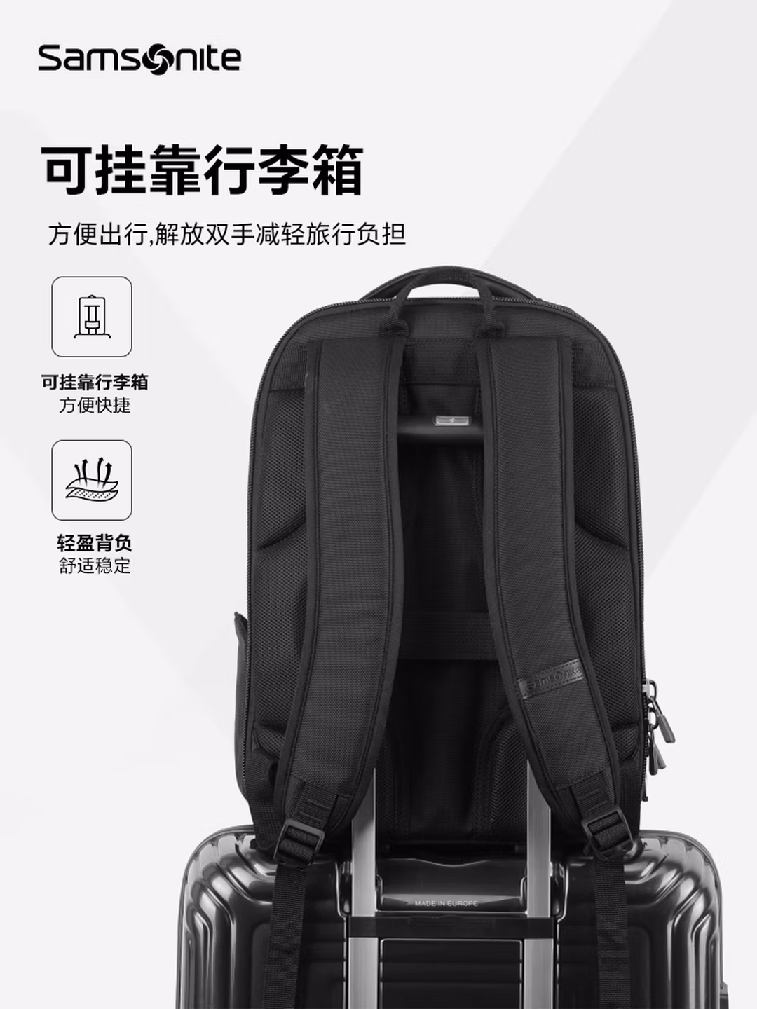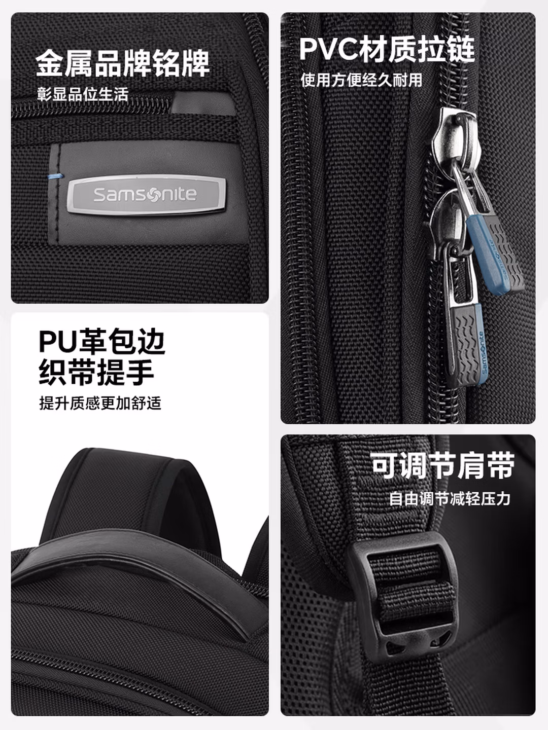 新秀丽(Samsonite)男士电脑双肩包书包商务通勤旅行轻盈大容量多隔层背包BQ3*09002,京东商城好评率100%,现新秀丽背包官方旗舰店售价¥1080,领取¥681京东优惠券 ,实付¥399包邮。
