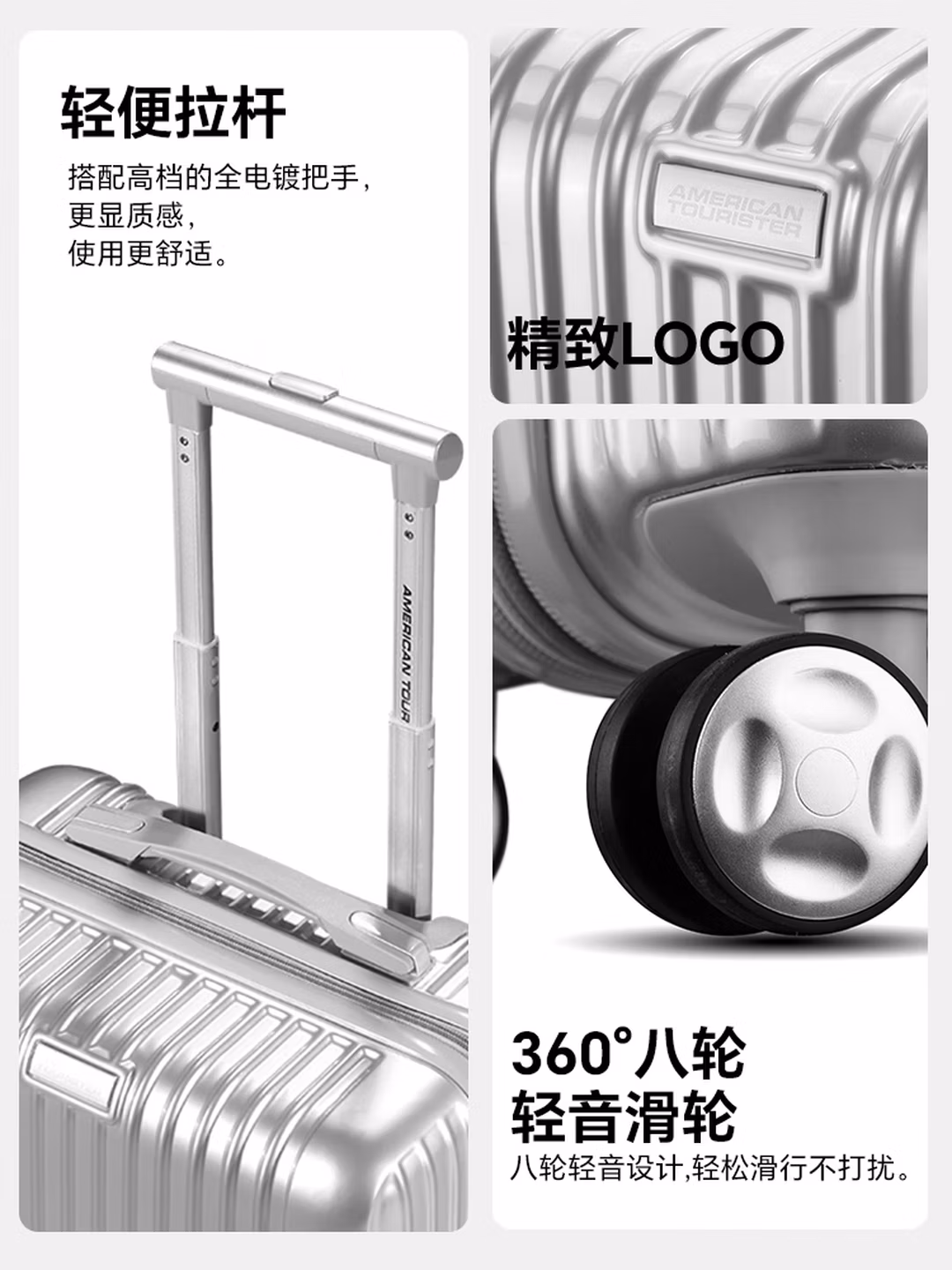 美旅(AMERICAN TOURISTER)行李箱万向轮拉杆箱时尚简约学生旅行密码箱男女出差银色 661 ,京东商城好评率100%,现美旅奥莱官方旗舰店售价¥699,领取¥360京东优惠券 , 实付¥339包邮。