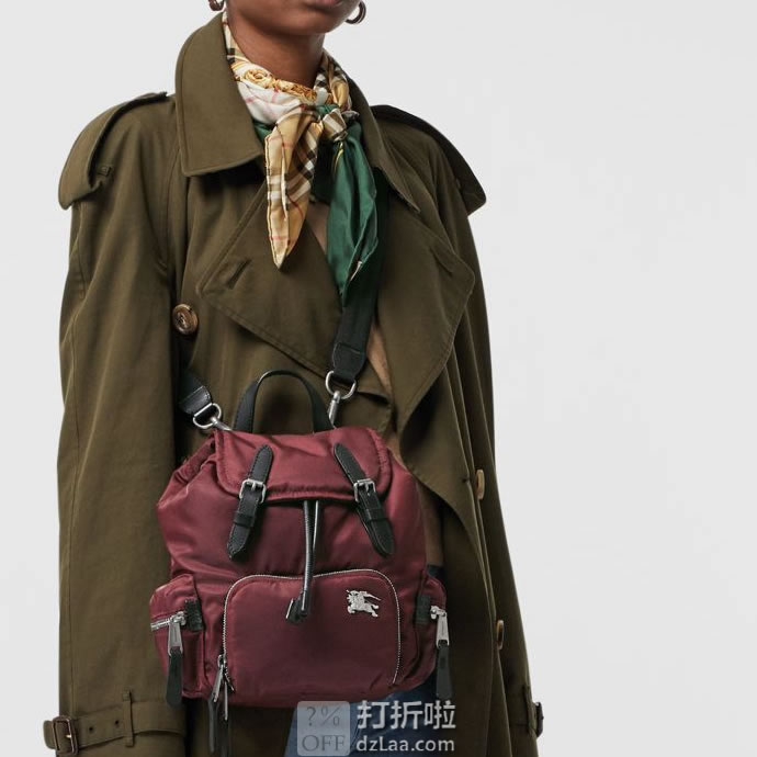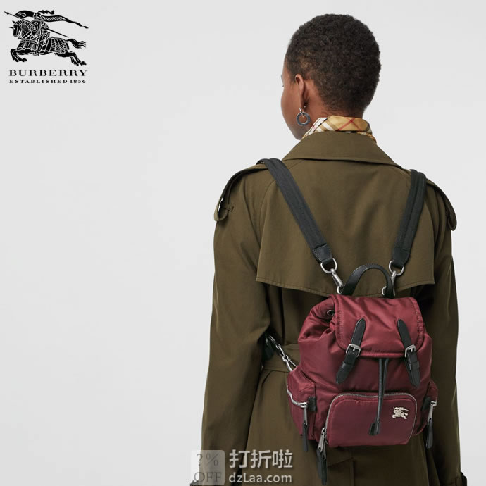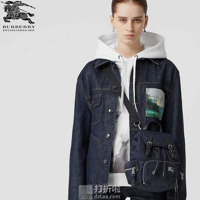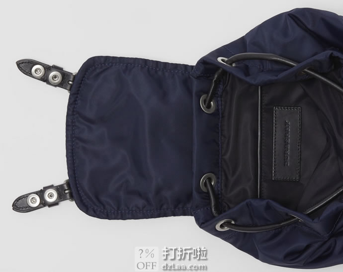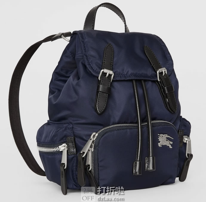 BURBERRY 巴宝莉 The Rucksack 小号尼龙双肩包,以品牌典藏的军风包款为原型。选用防渗雨填充尼龙材质,点缀马术骑士金属图案,焕新设计。随附背带便于斜背。